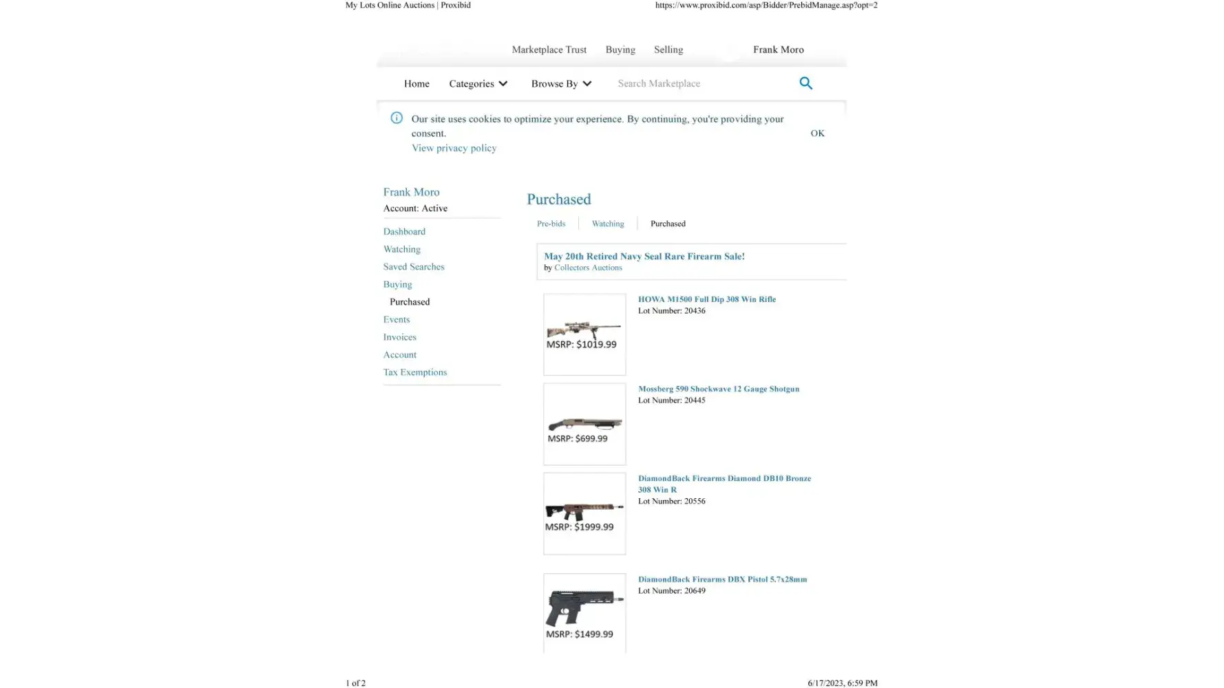 Collectors Auctions is operating through a HiBid platform. They conducted a gun auction, were paid by wire transfer and never shipped one of the guns that was purchased. They are not responding and cannot be reached. Before we request and investigation through the Attorney Generals Office of Texas, we wanted to reach out to you since Hi-bid indicates they are member. They are also not responding to our requests. It appears they are selling the same guns in multiple auctions. I actually bid on the same gun in two separate auctions. What is missing is the first item on the list HOWE M1500.