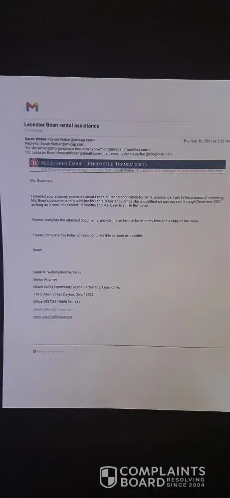 Management and lawyer was contacted on 9/14/21 by MVCAP to help with rental assistance to pay up to December 2021. They are aware that payment is due by noon on 9/16/21 but yet failed to send paperwork back of what's owed including lawyer fees. It's like they want people homeless and not willing to help when help is trying to be provided. HELP !