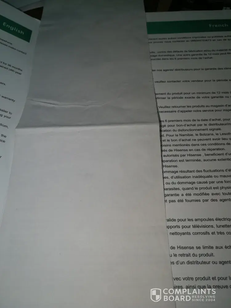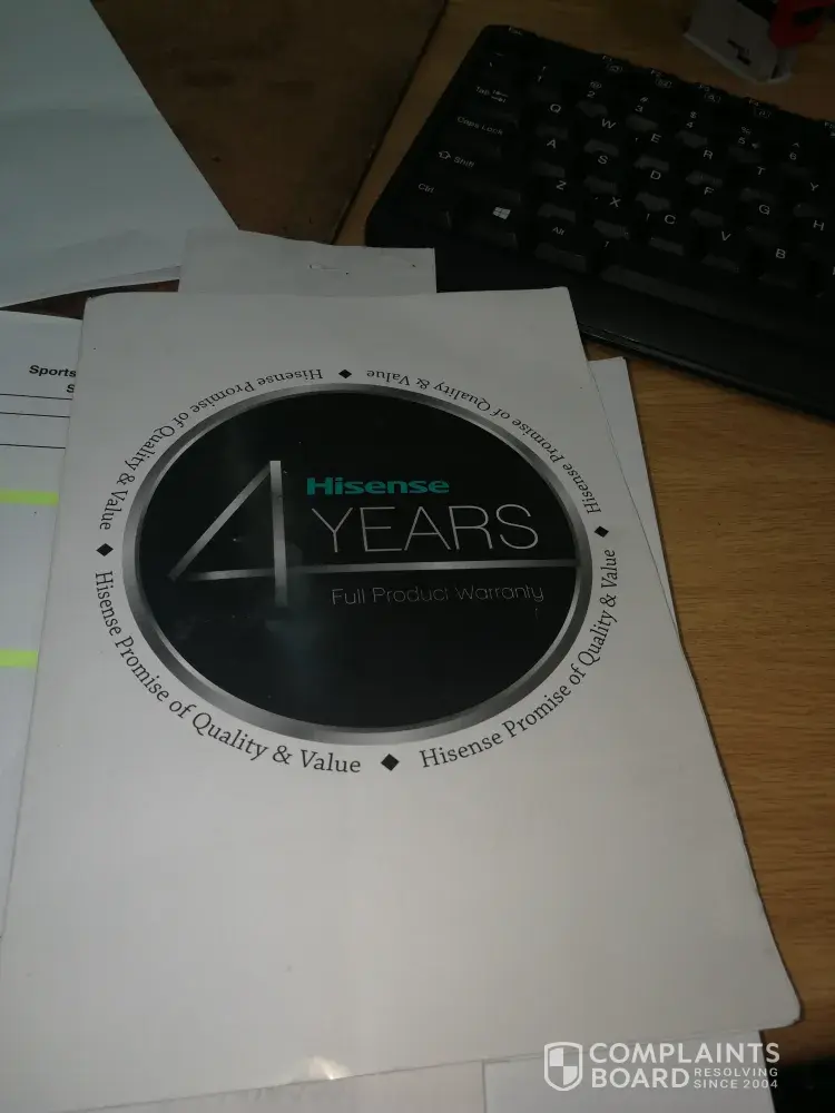 I went to the nearest Hifi store on the 27 July 2019 to find out what the process is and they advised me to log the complaint with the "online people", I did under ref: [protected]. My TV was then taken in for assessments on the 31 July 2019.