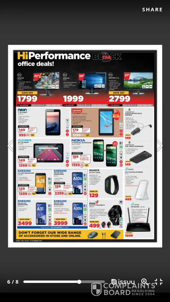 On the 27/10/2020 I was on their website and found an Samsung 82" smart tv labeled on sale from R41999.99 and with a discount of R22000.00 and the price was dropped to R19999.99,
