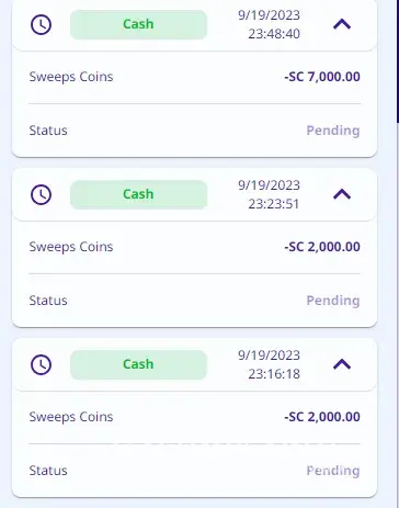 I submitted 3 redemption requests on Sept 20, 2023 - one $7,000 and two for $2,000 - all are still pending even though their site says a 72 hour turn around. I have emailed daily with only canned responses back and no other action. All of their phone numbers go to a generic message where you can not leave a message. The money was won fair and square and demand payment. If the company is a legit as they state, this should not be an issue.