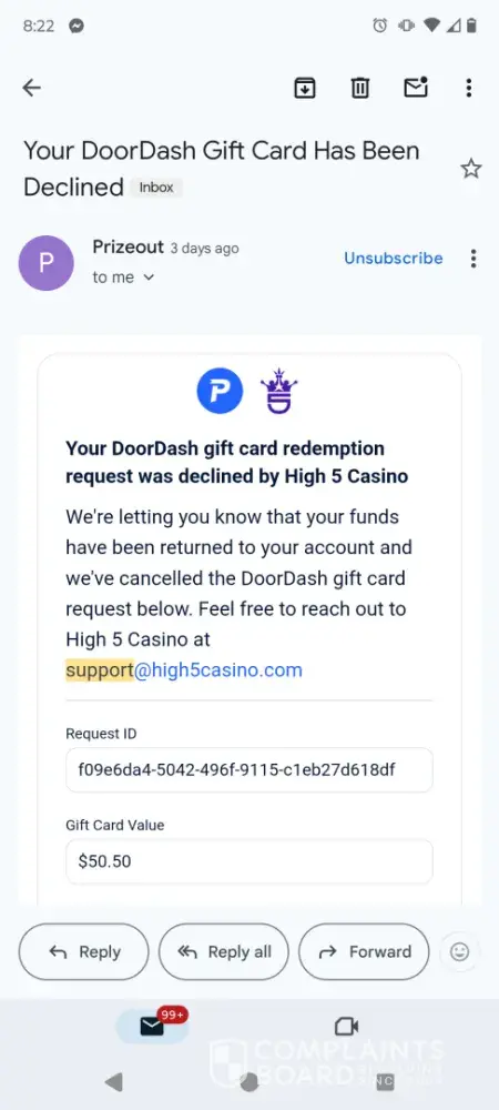 It’s been since October 28, I redeemed for $100 to my screw card or maybe my PayPal not for sure now and I have been emailing I have been following complaints. I have been emailing and complaints of the complaint. I still haven’t heard anything back from either company. This is not gonna be my last email. I will email all day every day until your...