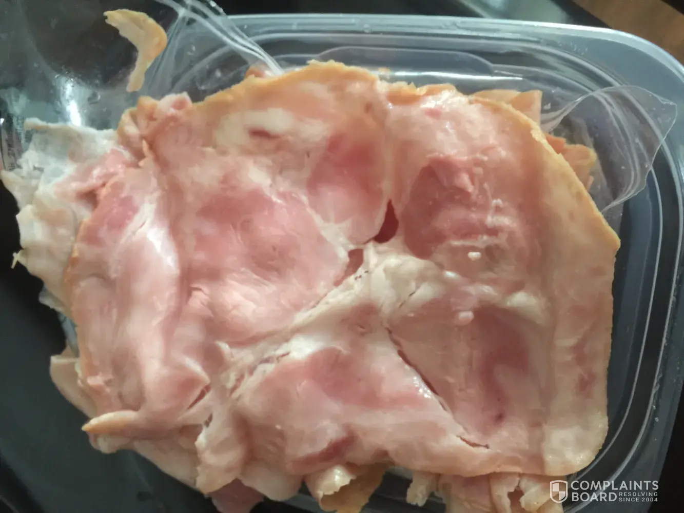 Ham has large chunks of fat and is inedible. I have never had ham with this amount of fat in when buying this product before. I can't eat this product because of all the fat. Why would this product get through your line as it is not edible. I don't have a lot of money and decided to get ham for breaksfast and once I opened the package I realized that it was not edible. There are large chuncks of fat through out each piece as I looked to see if it was just a few pieces. I can slice in the container of filled with fat. This is unacceptable, and I want someone to contact me about the product.