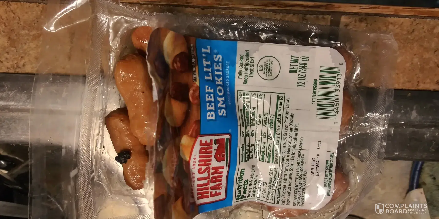 I just bought a package of the little smokies about two days ago and when i opened them up tonight, there was black chunks in it and little black spots throughout the package. Ive never had any product look like that. Its in date amd no air was in package. My name is callie crafton and my phone number is [protected]. Email [protected]@yahoo.com