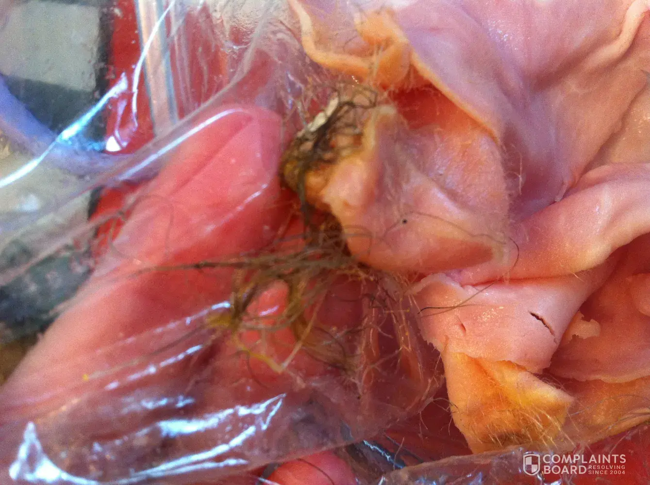 I recently went to the grocery store down the road from my house. I started my grocery shopping when I got the the deli meat selection I picked up Hillshire Farms Smoked Ham and turkey. We have always bought this in the past and have had great results. The expiration date was 2/5/2013. After dinner one night my husband was still hungry and decided to eat the ham. He took a bite, looked down and notice a HUGE pile of Thick, course hair! I have never had something so disgusting happen to me in my life and for that I will NEVER buy HillShire product again! I really hope this never happens to anybody else!