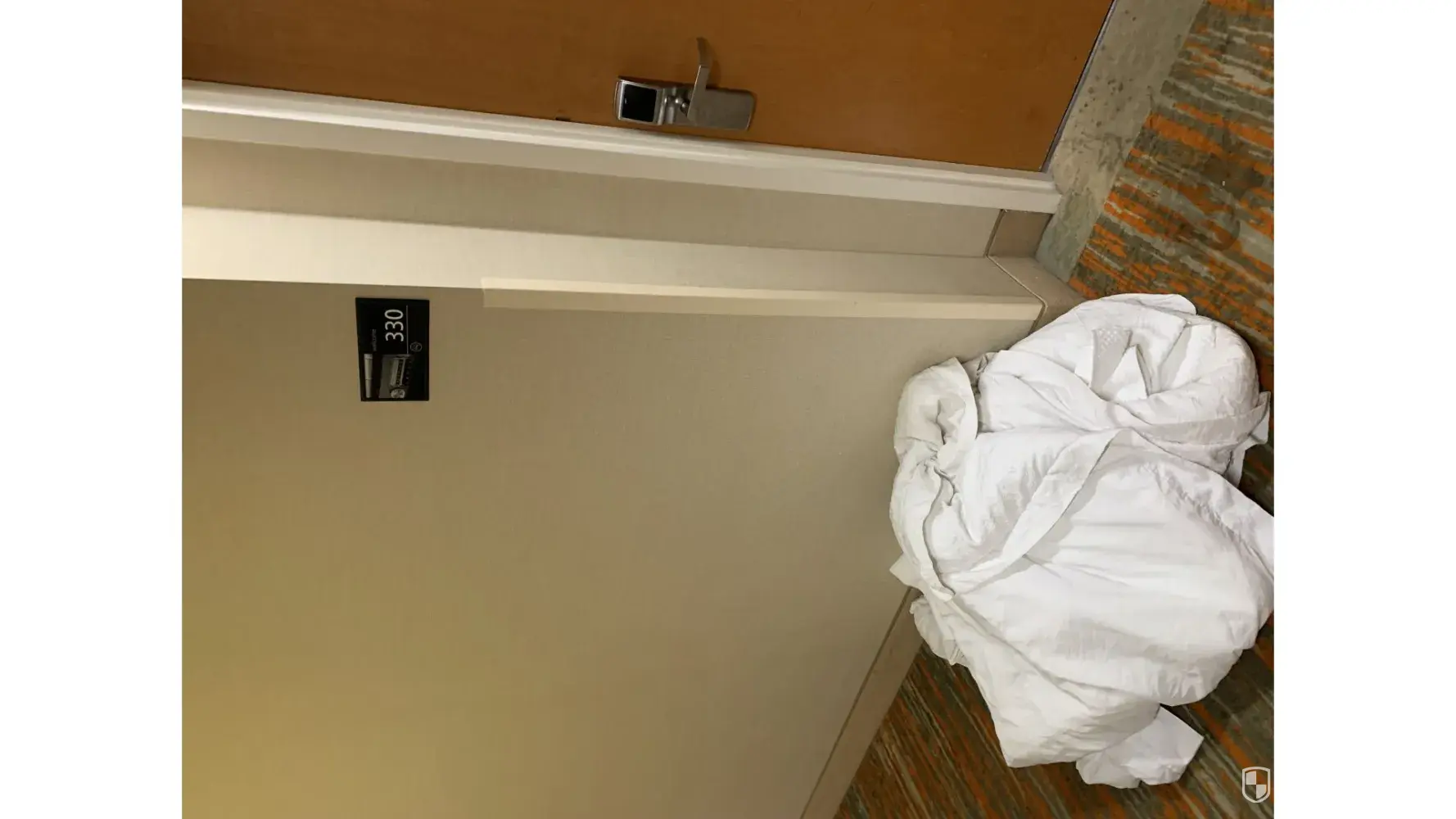 8. Door sign 510 is broken and was laying on the hallway floor. Â