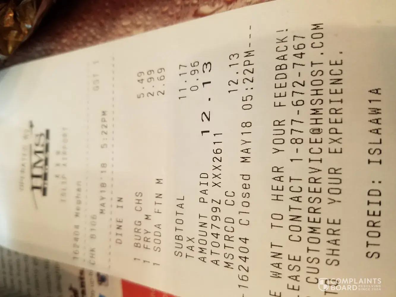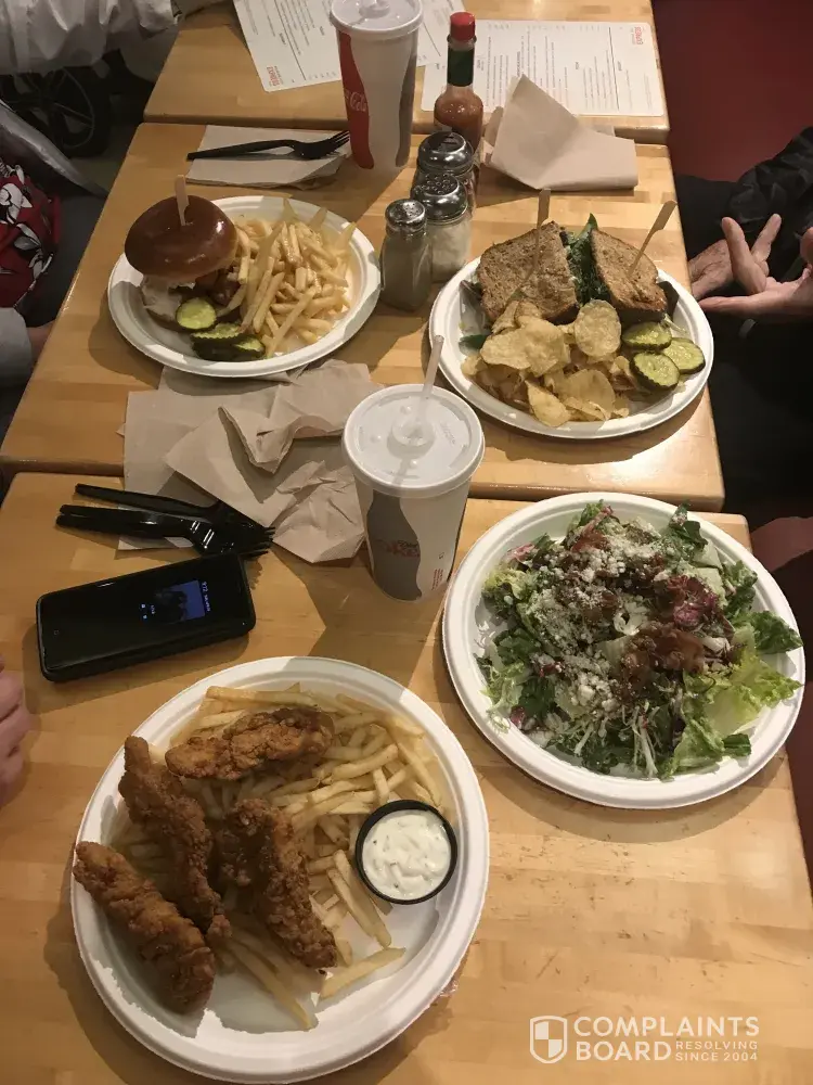 Service date 4/21/18, 11:07 AM, cashier Ke-shari, check 674. Poor service from the beginning - the cashier charged us two different prices for the same bottle of water. We tried to resolve that, not sure we were credited. When our order came, we received half our order and the other half came when the first was complete. (One person ate, then the other person ate after). The burger was not cooked to order. It was a shame, because we've eaten there before and were happy.