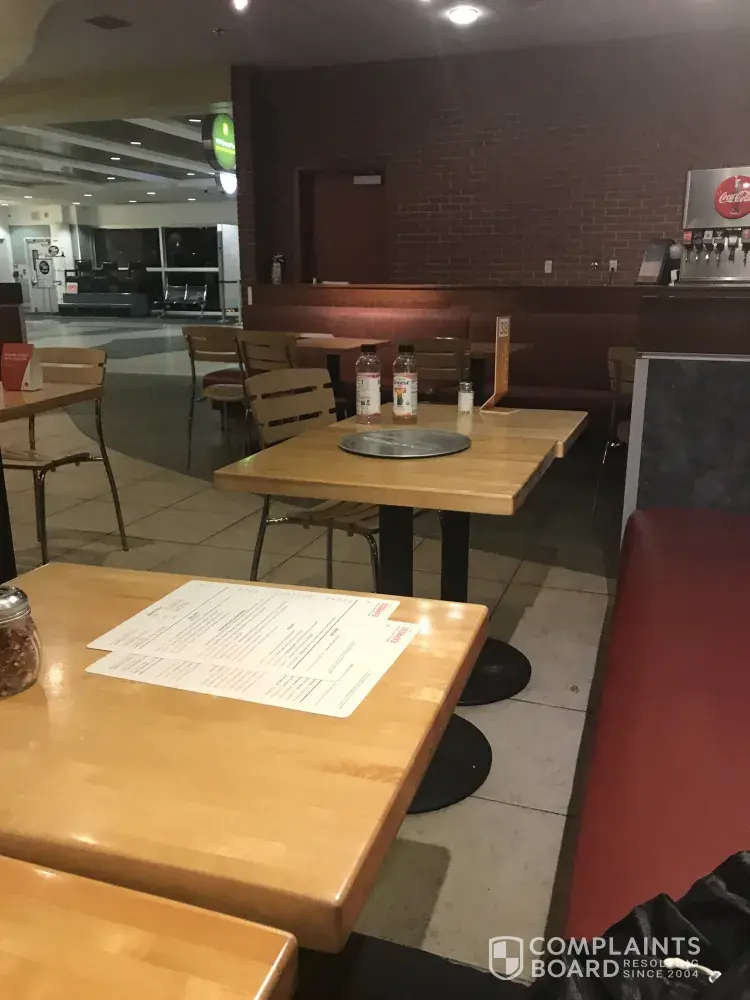 Restaurant closing early they said they can do what they want? I had to force food down my throat and almost throw up because of this!Jakia was a rude and crazy server who should be fired! Had to beg her to make coffee, and would not clean up ice all over because she wanted to get out of there! She wanted my receipt and told her NO I NEED IT-She could not believe that my flight on SWest Airlines was delayed two hours, and I had a$14.00 VOUCER