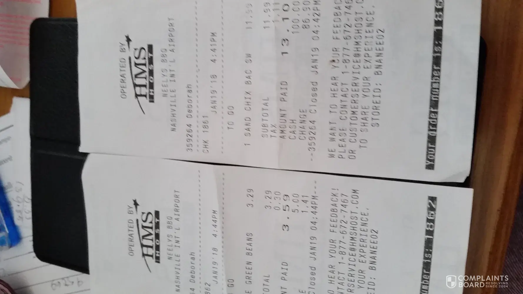 On Jan 19, 2018 I was at the airport for a 5:20 pm flight to Atlanta. I stopped for a meal to take on the plane with me because I hadn't eaten all day. I ordered the Chicken Sandwich minus the bacon with a side of green beans. Thank goodness for the green beans. They were delicious and they saved me. The chicken breast in the sandwich was so dry and overcooked that I had to throw the entire sandwich away, minus that first bite. What a waste of my $13.10. You would think that your cooks were better trained. My cashier was Deborah. I would like my $13.00 returned to me. I still have the receipt and can send a copy. I cannot, however, send a picture of the food, as I left it on the plane in route to Atlanta. At the time I had no thoughts of contacting you for a refund. I was just angry and still hungry.