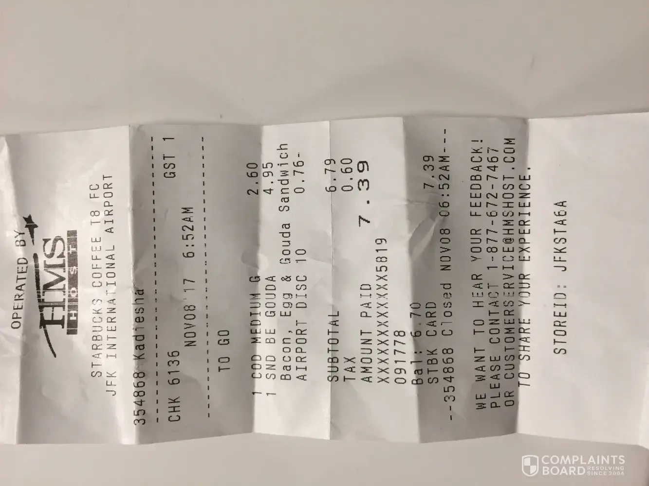 I have 2 complaints regarding the Starbucks facilities located in terminal 8 at JFK airport. I have purchased my Starbucks coffee 2x in the outlet near gate 38 in the recent past, both with supposedly inoperative scanners, which disallowed not only my gift card funds but also never rewarded me the Stars when purchasing their products. Another incident just today at the food court which did not give me my free sandwich when prompted. Not for nothing but Starbucks is rather expensive, and any rewards given by numerous past purchases should be able to be logged into without issues! I feel that I should be compensated for my "lost" freebies which included one free item and $15.00 in "star points".
