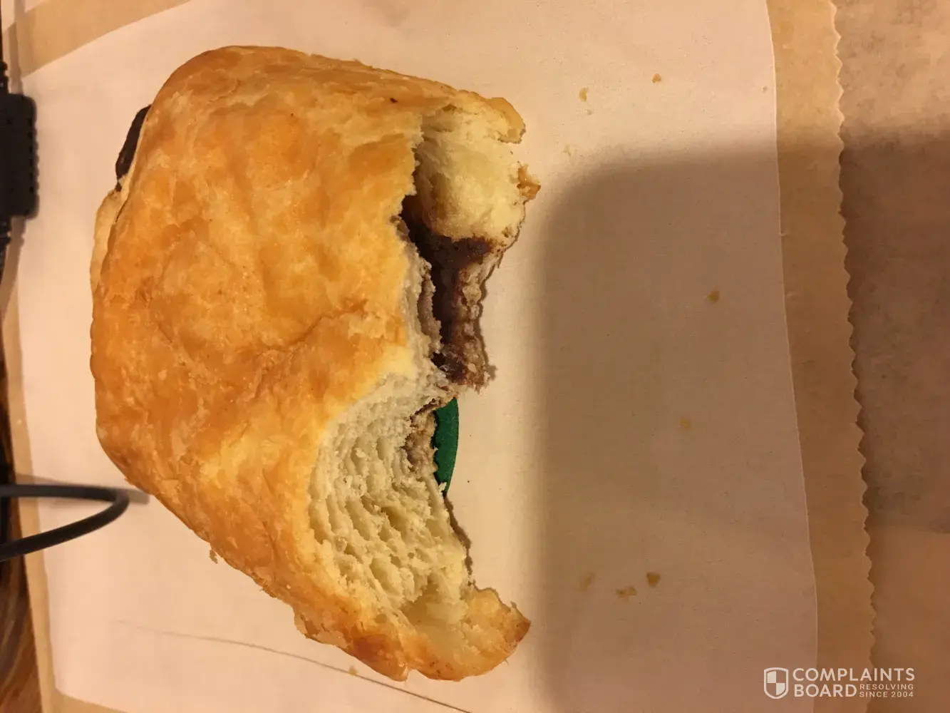 We are @ Starbucks @ Miami airport. Bought 2 chocolate croissants. Both were stale and flat. I would venture a guess that they had been refrigerated overnight which added moisture to the layers of pastry. Croissant should be light and flaky, not flat and soggy. They were really, really bad. Quality control is a good thing! I won't spend $6.50 for Starbucks croissants again. ðŸ˜