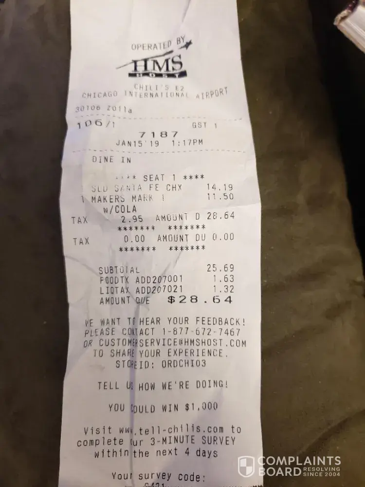 Jan 14th 2019 my husband and I stopped in at Chills at the Chicago INT airport ORDCHI01. There was hardly anyone in the restaurant, yet our server was slow, did not bring the water we requested and waited to bring appetizers. In her defense, she had no help. Customers were getting up and leaving, wish we would have. My husband and I are not ones to complain, so we picked through our cold hard food because we were starving and after waiting so long...well "its airport food" right? It doesnt have to be. Before we were even finished they started shutting the place down, handing out all of the tickets. $58 for horrible food and not much better service...WOW