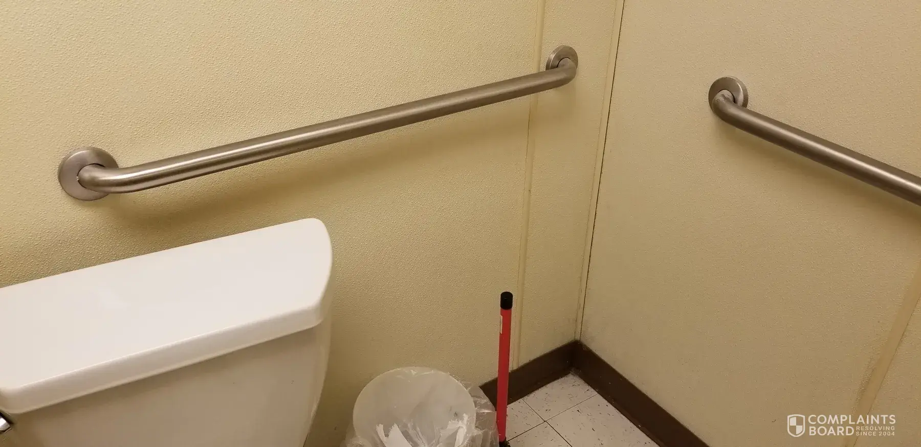 I have a knee injury and used the handicap stall at the Hobby Lobby store on Wade Hampton in Greer SC. There are to hand rails improperly placed. They were no help at all. If I were a giant maybe. This issue needs to be fixed. There is one rail behind you and one across the stall. Both rails were unreachable. I can't believe they passed building code.