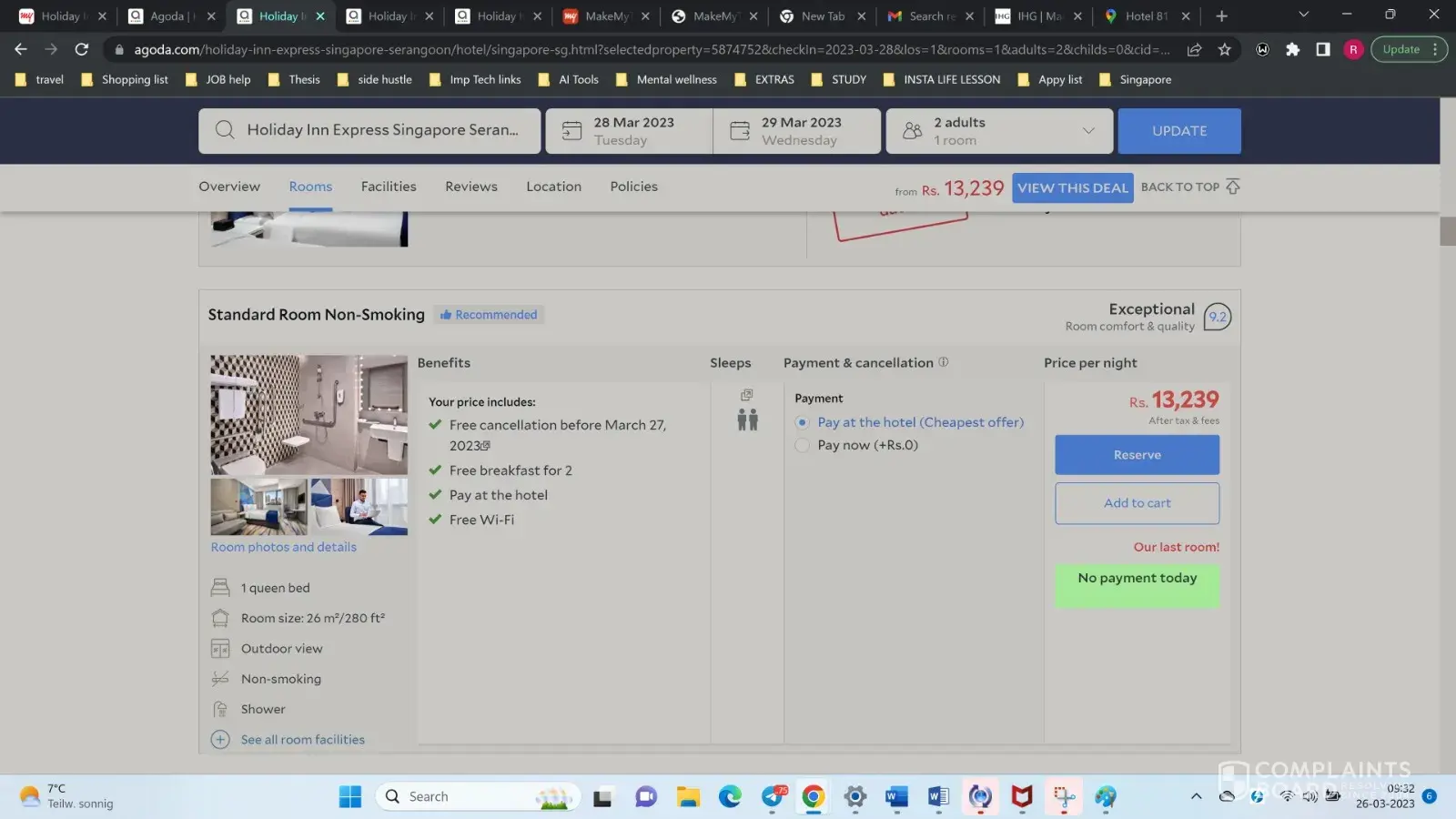 I am writing to inform you of a concerning issue I have encountered involving fraud. I recently booked a room through AGODA for your hotel chain, Holiday Inn, and was promised a 26msqr or 280 sq ft room. However, upon arriving at the hotel, my parents were told it is a 19mtr sqr room.