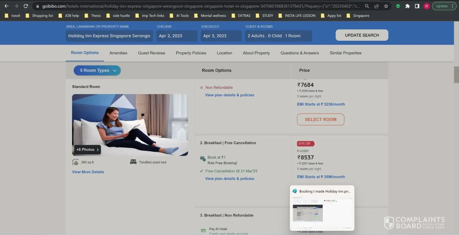 I am extremely disappointed that I was misled by Holiday Inn and feel that I have been a victim of fraud. I have included screenshots of my booking as well as proof from other websites to corroborate my claims.