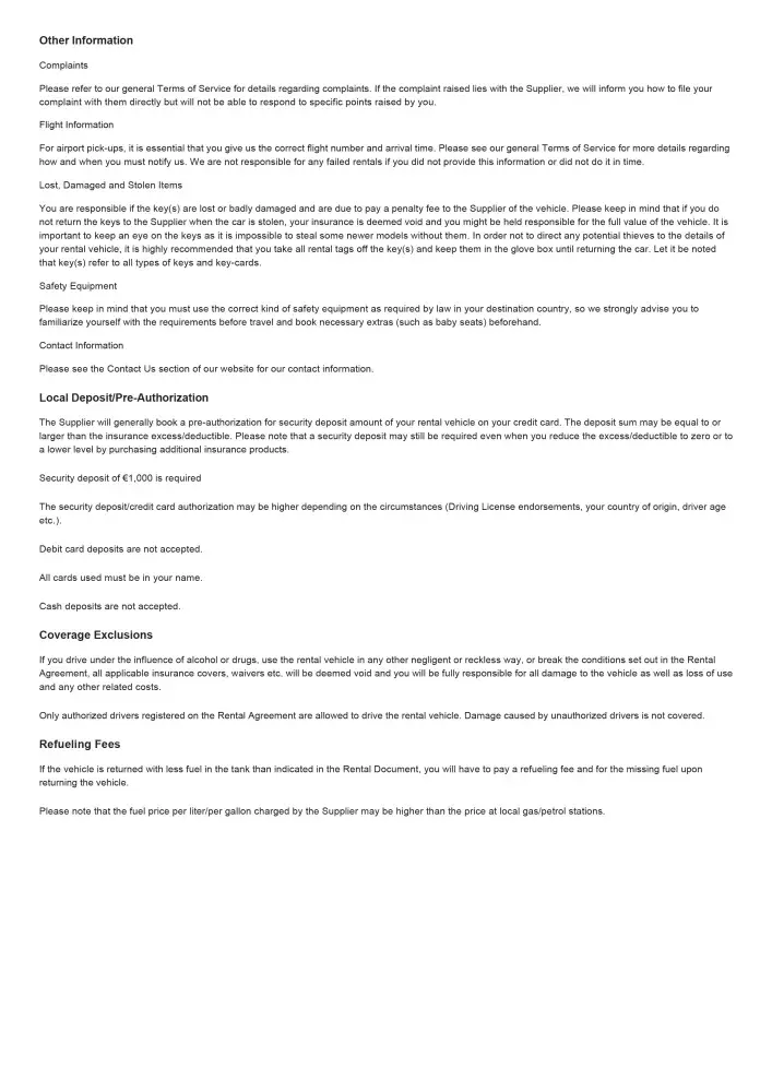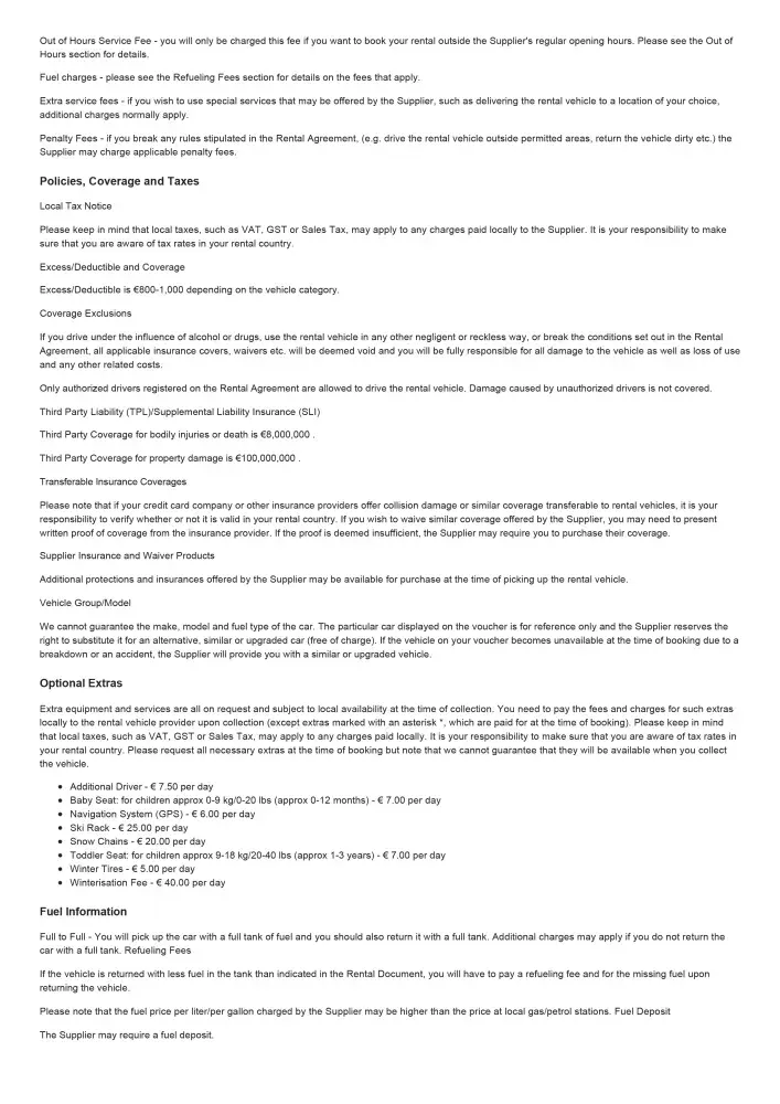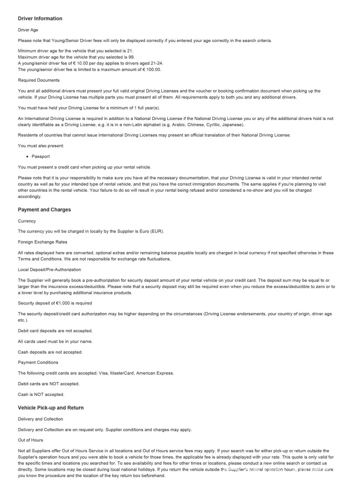 They take your money from your card before reservation confirmation and then while you are waiting confirmation they are calling you and say sorry we cannot give confirmation if you want we can charge you more money (around 110 Euro) and book your car or you can cancel your reservation but you will take you money within 8 days. They put unreal car on their site to trick you and take more money from you they just force you to pay more money. totally confident tricky. ( ı canceled my reservation and found less expencive car than thier second offer.