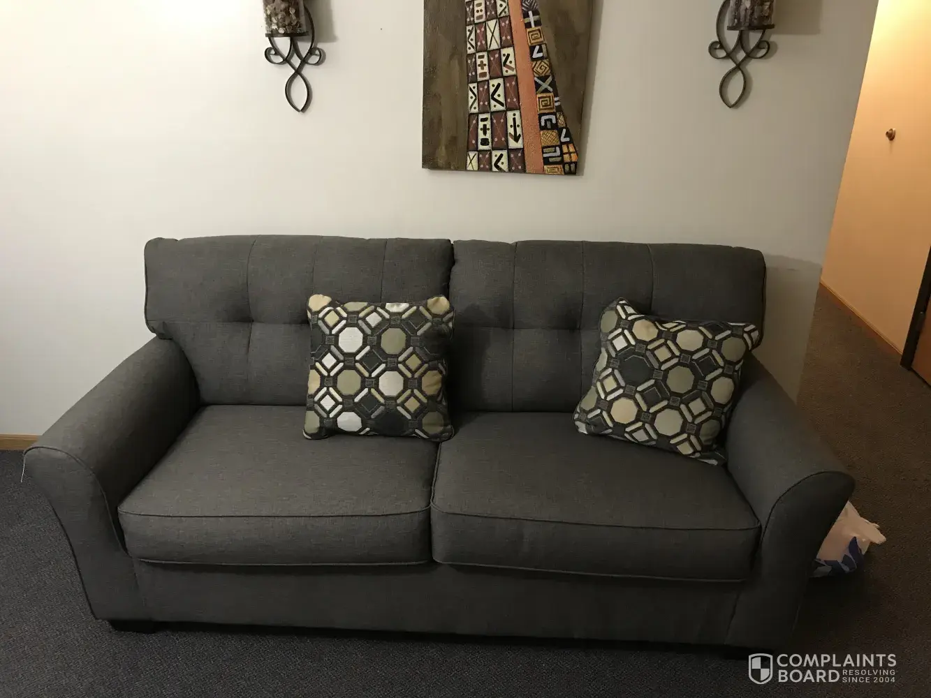 I ordered a couch from them. I got my couch yesterday. It was wrapped nice . When I opened it I was shocked. It was a grey color. I ordered a brown color. When I seen this couch it was brown the Sales Consultant Rick said it will turn brown in the light. I'm so disappointed. It doesn't match my front room at all. This was my first BRAND NEW Couch for me and my son apartment. I'm SO, SO, So, SO VERY DISAPPOINTED.he lied so he can make a sale shame on him. I will never buy anything from there again.it is a high priced couch. It's' not worth it.