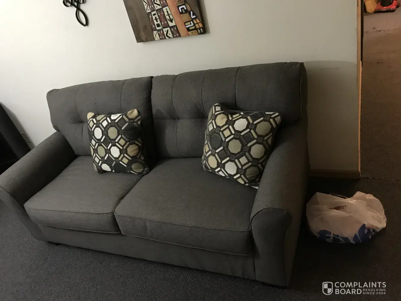 December 2019 I purchased three pieces of furniture two chairs one dogs, the sofa and one chair contained pillows totalling 5 pillows. I did not receive my furniture until June of 2020 I was told first covid-19 but later the second customer service person said it was sold to someone else, when I received the furniture I realized the pillows were filled with...