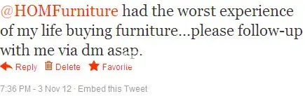 I am very sorry to hear about your experience with us. My name is Dan and I work at HOM Furniture within the Customer Care department. I would greatly appreciate the opportunity to help make this right. I can assure you that this is not the experience we at HOM work so hard to provide. Please feel free to contact me at dsandager@homfurniture.com