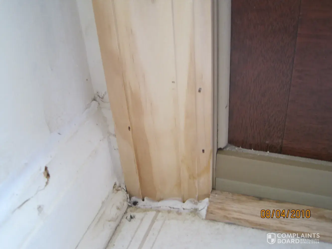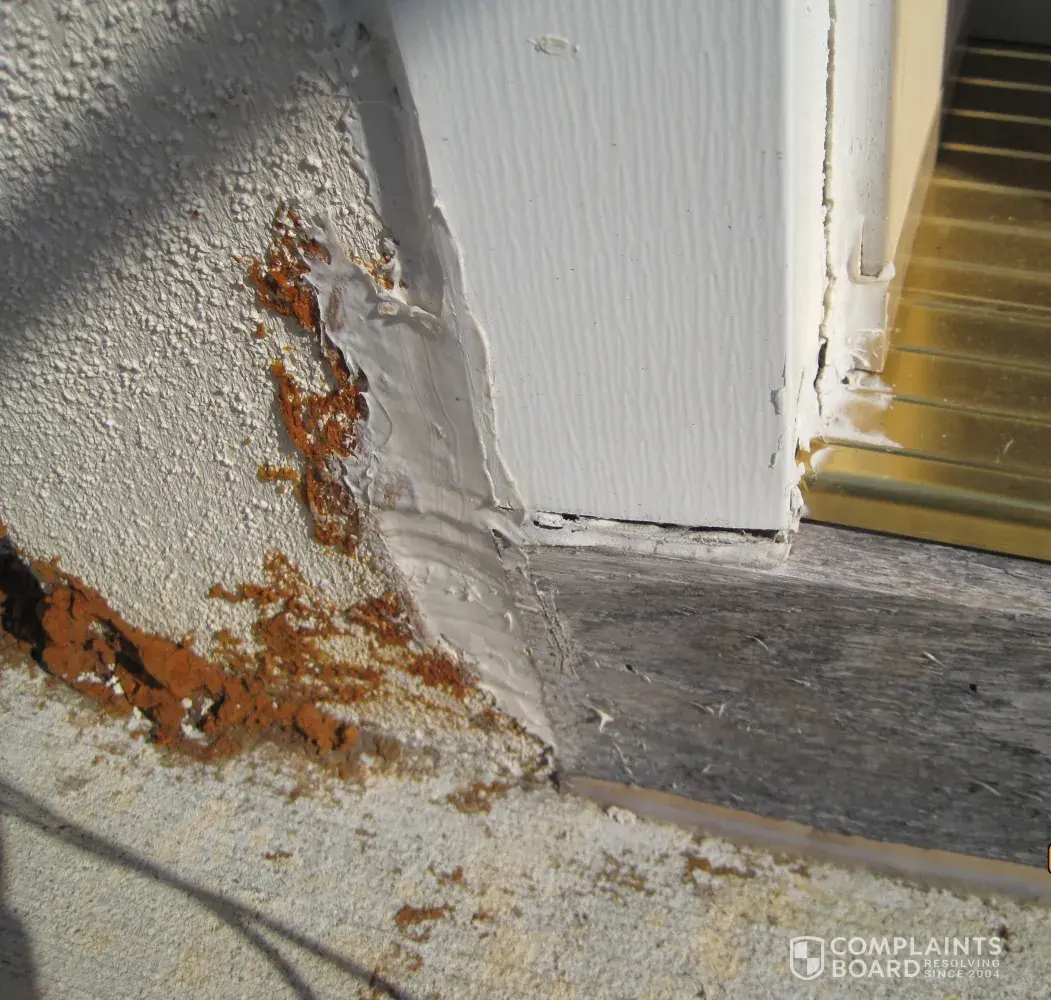 After the doors were fixed, and in between the hospital visits, we contacted Home Depot for compensation. A local assessor came out and insisted that was wind damage, which she claims for which HD is not responsible. We tried to explain that the screws to secure the doors were too short (1/2 instead of 3 as required) and there were only two nails to support the bottom part of the door instead of six. Accordingly, the door became tilted and was not locked properly. In addition, the door frames were not caulked at all to seal the openings between the outside wall and the door frames.