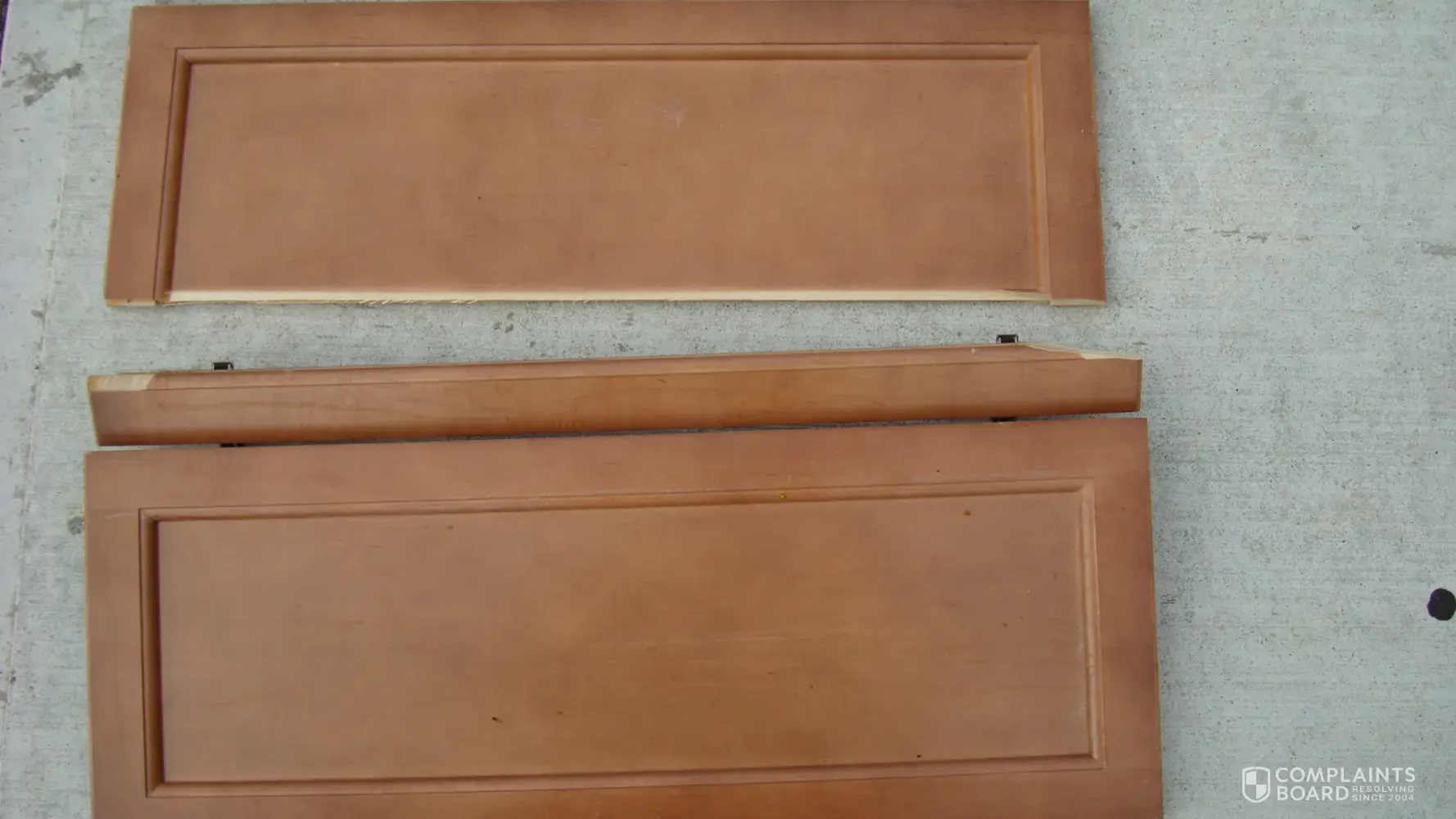Unfortunately, many problems developed from poor quality cabinets to lack of important “in stock” selection to complete the project smoothly. For example, the Wadsworth Bay cabinets appeared to be produced of far more inferior quality than the original cabinets purchased, resulting in many exchanges creating delays and disruption of the installation process, as per photos attached.