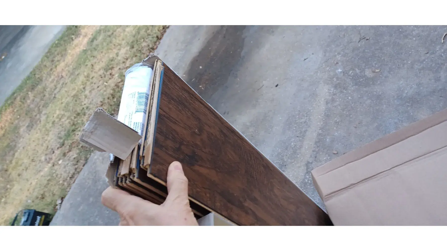 We had to purchase additional flooring to replace some of the original order that had damaged pieces. It was a week late just like the original order causing delays for the contractors. This is what the two boxes looked like when I opened them. They left it outside the garage at 630 AM and signed for me and I can see why. It appears that they threw or just dropped the boxes on their ends. One whole box, with the plastic wrap torn open is useless.