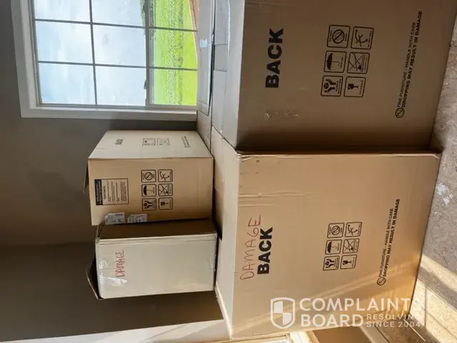 Desired outcome: I want to be compensated for my time and space being taken up by box after box of damaged cabinets.