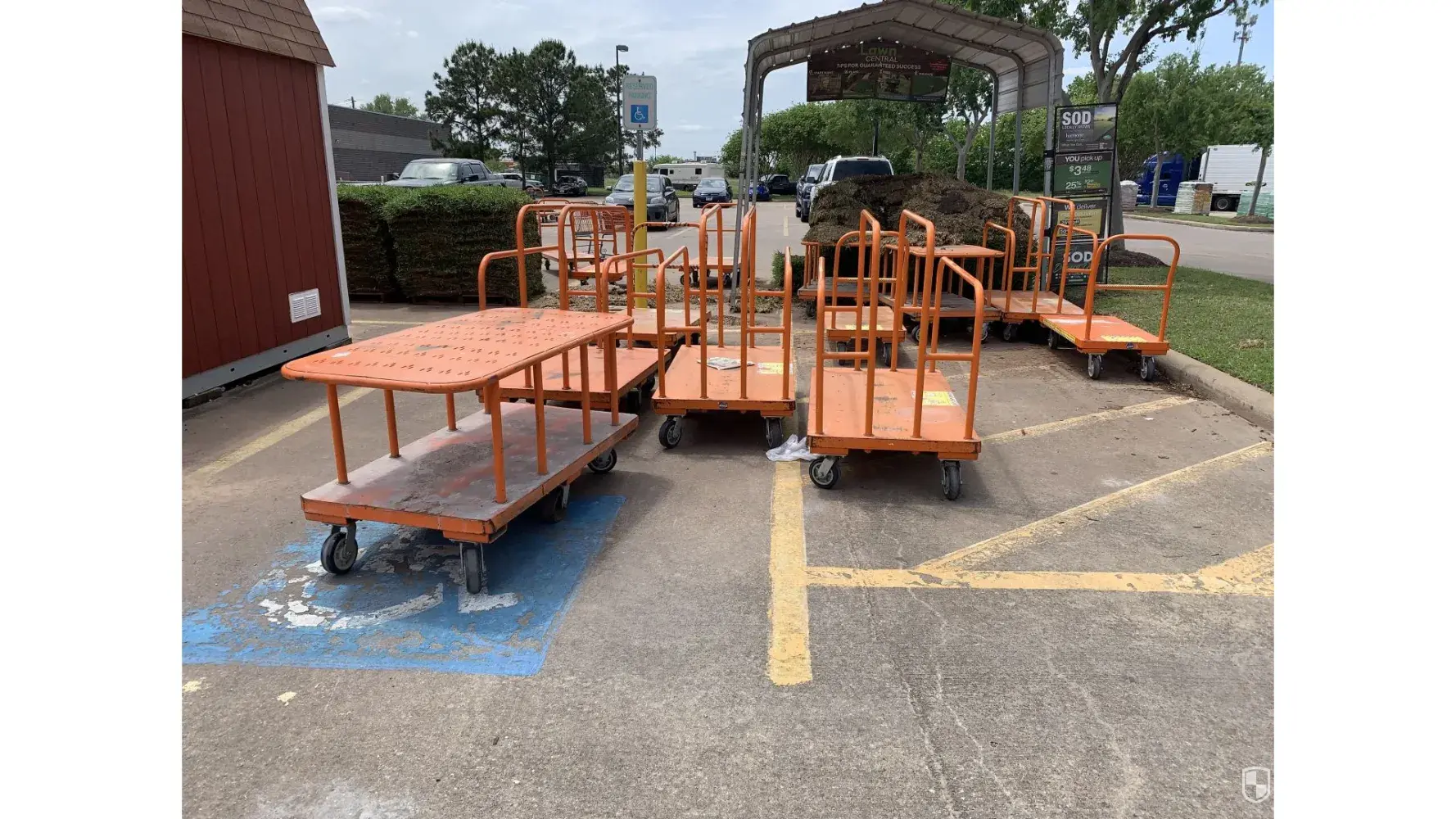 On April 28, 2020 I visited the aforementioned Home Depot store to do my shopping. I am a 100% Disabled USMC Veteran who uses the Handicap Parking spaces when one is available for I have limited walking capabilities. On three different occasions I have found shopping carts and/or the orange loading carts completely blocking a handicap parking space. I have personally addressed this issue to management each time and once again I have found these loading carts blocking a handicap parking space. This repeated problem continues without any changes to date. The next time I find these orange loading carts blocking a handicap parking space I am going to formally file a complaint with the American Disabilities Act federal office along with a copy of this attached photo. I trust my complaint will be addressed and this issue resolved.
