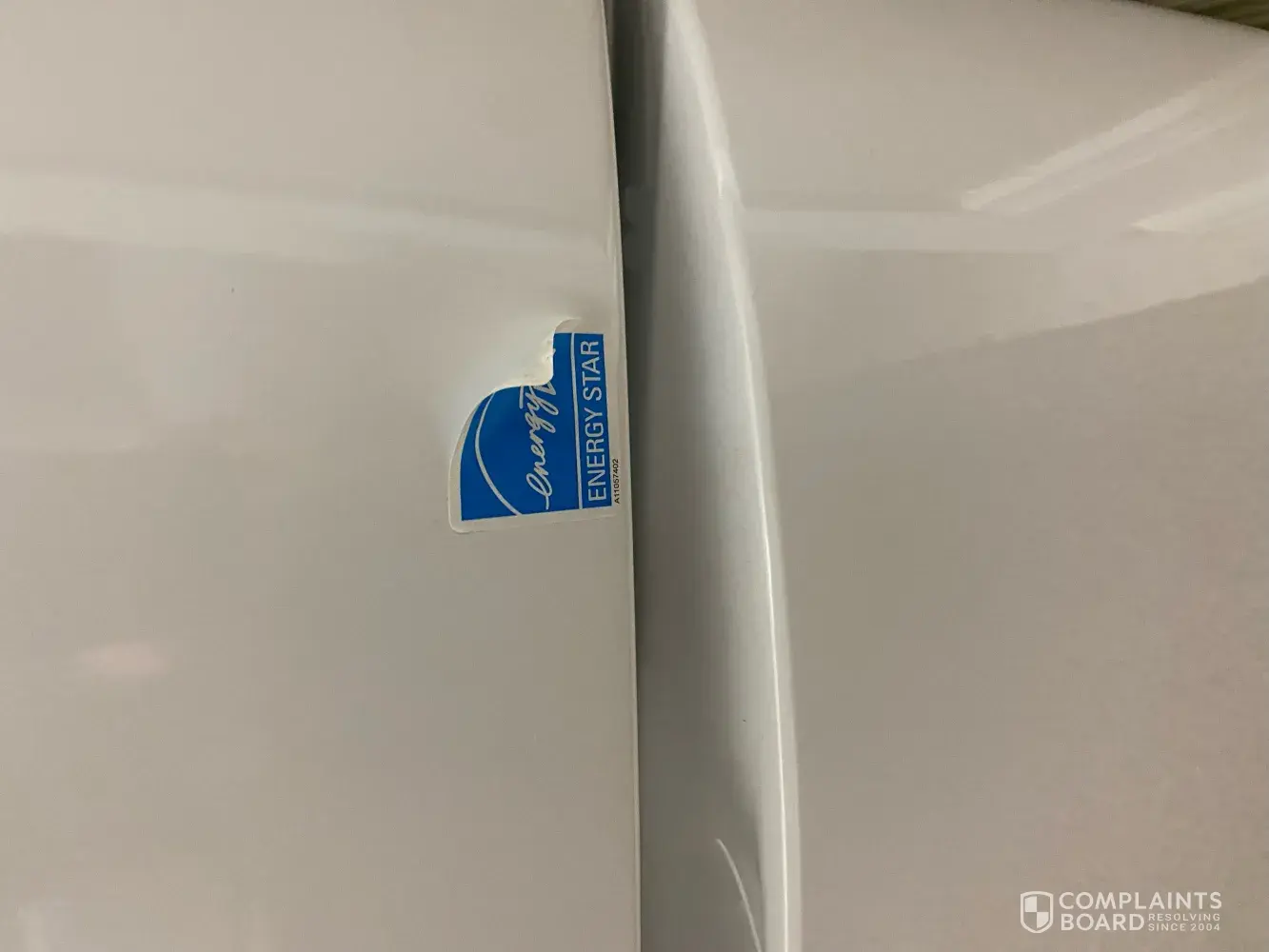There was a Blue Energy Star Sticker on the front left bottom corner of the dryer. We paid no attention to it as it looked like it belonged on the unit. last week my wife noticed that the sticker was starting to peel away at the each so she removed the sticker. When removed, the sticker revealed a significant chip in the enamel. It became obvious at that point that the sticker was added to conceal the damage. I can only assume that the contracted delivery company damaged the unit and put the sticker over the damage to conceal.