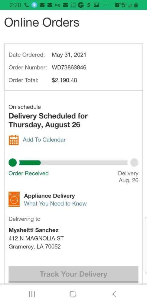 I ordered a GE electric range, and Samsung washer and dryer on May 31, 2021 my delivery date was July 29, 2021, it NEVER arrived and the company didn't call. I called the delivery company and was informed that the washer was damaged and needed to be reordered. The delivery date was changed to August 19, 2021. On August 19, 2021 they NEVER arrived again. I...