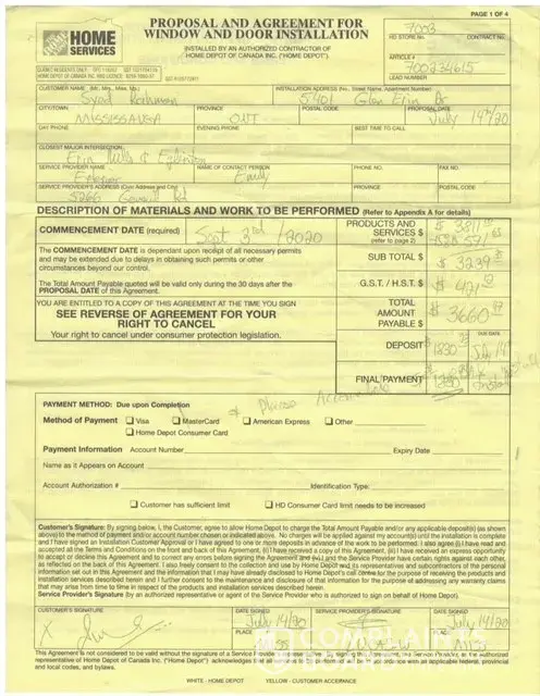 I am requesting your support in resolving the issue concerning home depot canada for the poor and wrongful installation of a patio door at my house and home depot refusing to replace the wrong door. I signed a contract with home depot canada (oakville) to replace the patio door of my house at 5401 glen erin drive, mississauga. Home depot contractor wa...