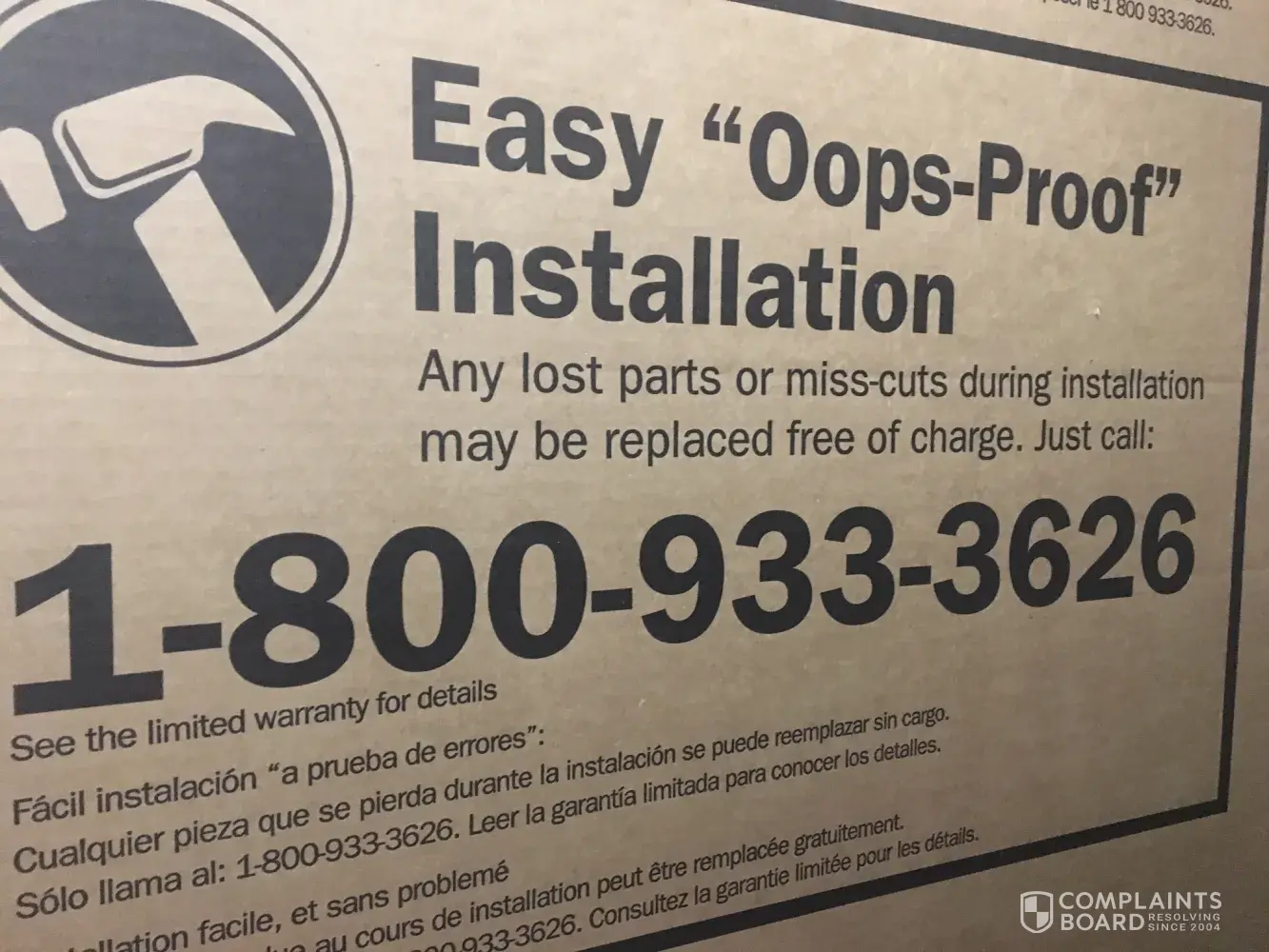 Home Depot sells Anderson Storm doors under an "EMCO" brand. On the box (photo attached) it promises in large print 'Easy "Oops-Proof" Installation' which claims that any miss-cuts may be replaced free of charge. The sliding screen door version requires drilling a number of holes in the frame. Admittedly, I screwed up and made holes in the door frame where they shouldn't be but there is definitely some inconsistency between the instructions in the installation group of papers and a separate template which caused the screw up.