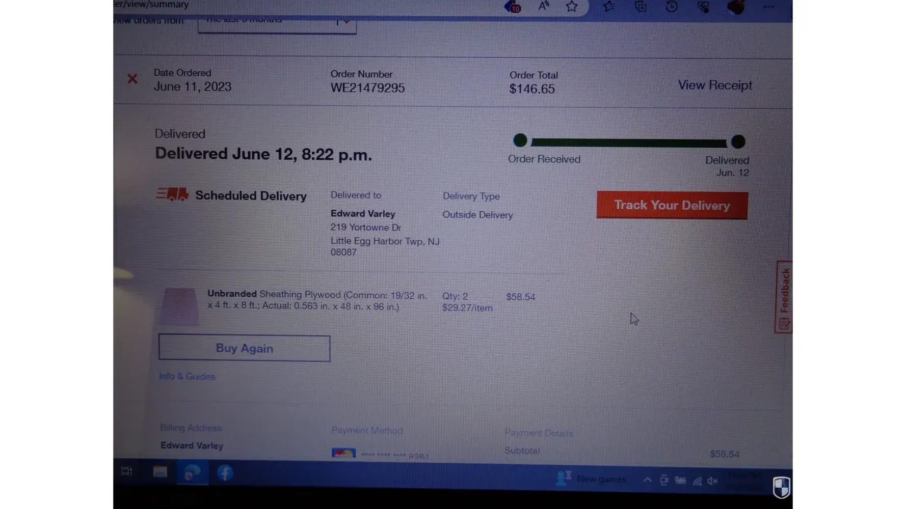 On Sunday June 11th I hade went online to order 2 sheets of plywood that I needed for underlay for my bed. This was The Manahawkin store that I had always used and never had any issues with. I had ordered 2 sheets of plywood at the cost of $29.27 each, Price $58.54, Plus 79.00 to have it delivered to my address at 219 Yorktown Dr. in Little Egg Harbor TWP N.J.. Plus tax of $9.11. I paid with my credit card and got a delivery date for Monday the 12th 8:00 am to 8:00 pm. for yard delivery. I had kept looking out front until 8:30 and no delivery. So I figured something went wrong. I checked my cell phone and had a message from the delivery man stating he ran late so the delivery may come tomorrow or later in the week. The next day Tuesday June 13th I had called the Manahawkin office and Explained that I had not received my delivery but on the tracking online said it was delivered at 8:22 and when I checked the status it said it was delivered 7:02 pm. He said he would talk to his boss and get back to me. My fiance and I had doctors appointments and got back home to call and find out why nothing had come or a phone call, My fiance called and found out that the delivery was coming from Forked River not Manahawkin and was told that I had picked the wood up there. He was told that wasn't possible and that I have a car and no way of transporting two sheets of plywood. He told her he checked with his girls and said that they said I did. I got on with him and told him if that was the case why would I have paid the $79.00 for the delivery if I was to pick it up. He said well I will refund you the 79 but I wasn't getting the money for the wood till he checked his cameras. First of all who gave someone the wood without getting ID. and why do I get charged? I and out 62.58 and this jerk paul should be fired as well as the ladies who lied and said I picked up my own wood. I have never been to that store in my life and if they can give an accurate description of me I'll be a monkey's uncle. So I still didn't get what I wanted, accused of being a thief and a crook like you people are. Thanks for nothing