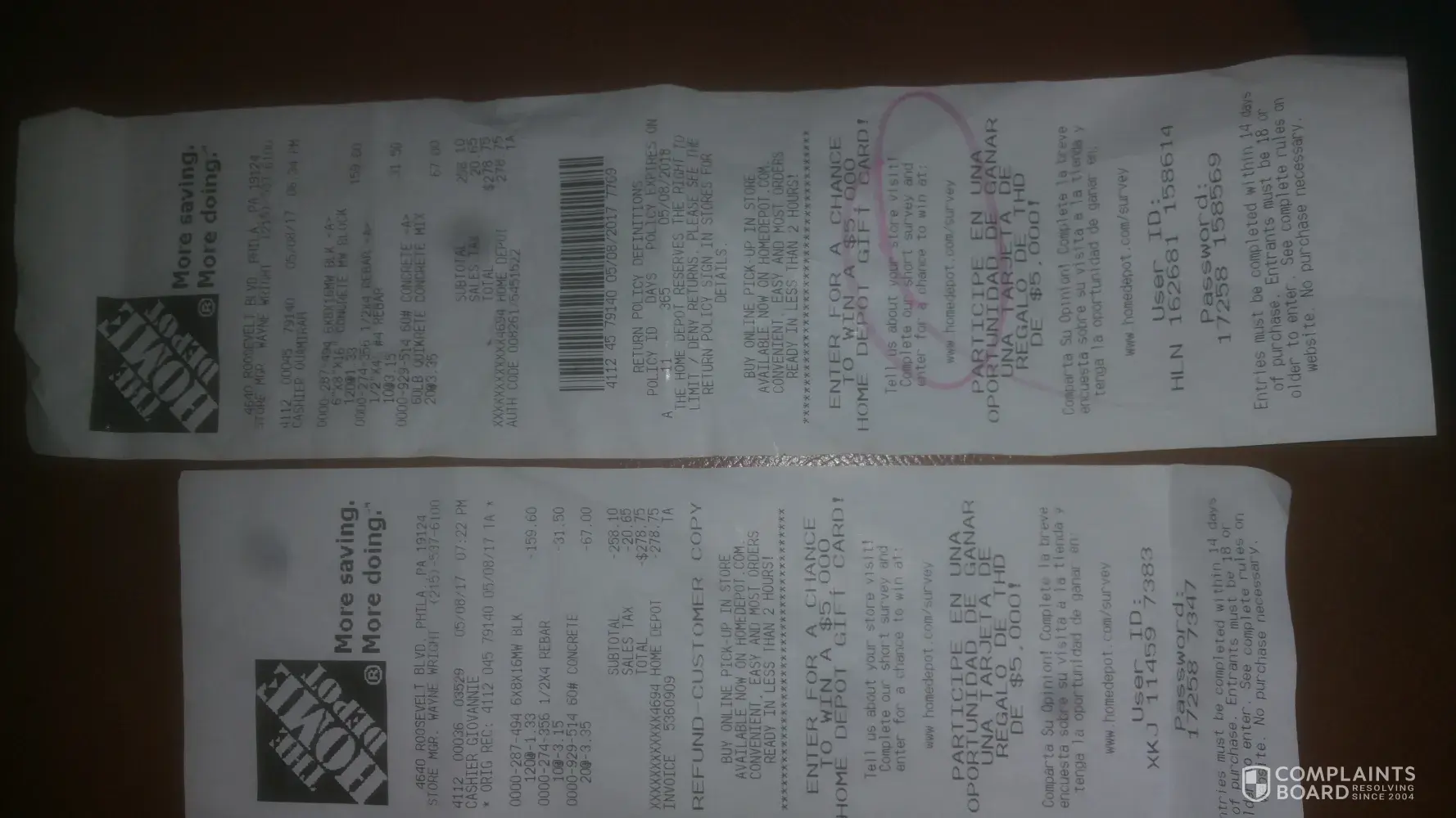 went to home depot to get a few things, first the grass seed, no one knew which would be the best, then went to get a spark plug, air filter, a couple 10w30 oil, out of the 3 parts they had 1.so then to the mail boxes, I need 3, , they had a black metal, a white metal, black plastic.3 different kinds wont work, together, everyone just give a damn about our needs.I go to the one in Greenville, S.C.but since this was for my mother that live in Greer we went to that one, next time she needs something its coming from Lowes.user ID :HLN [protected]...PASSWORD [protected]...THIS IS WHERE WE WENT, 1385 WADE HAMTON BLVD, GREER, S.C.29650