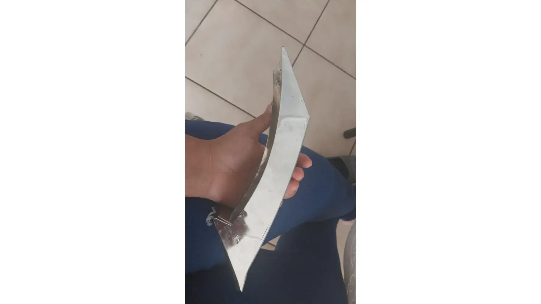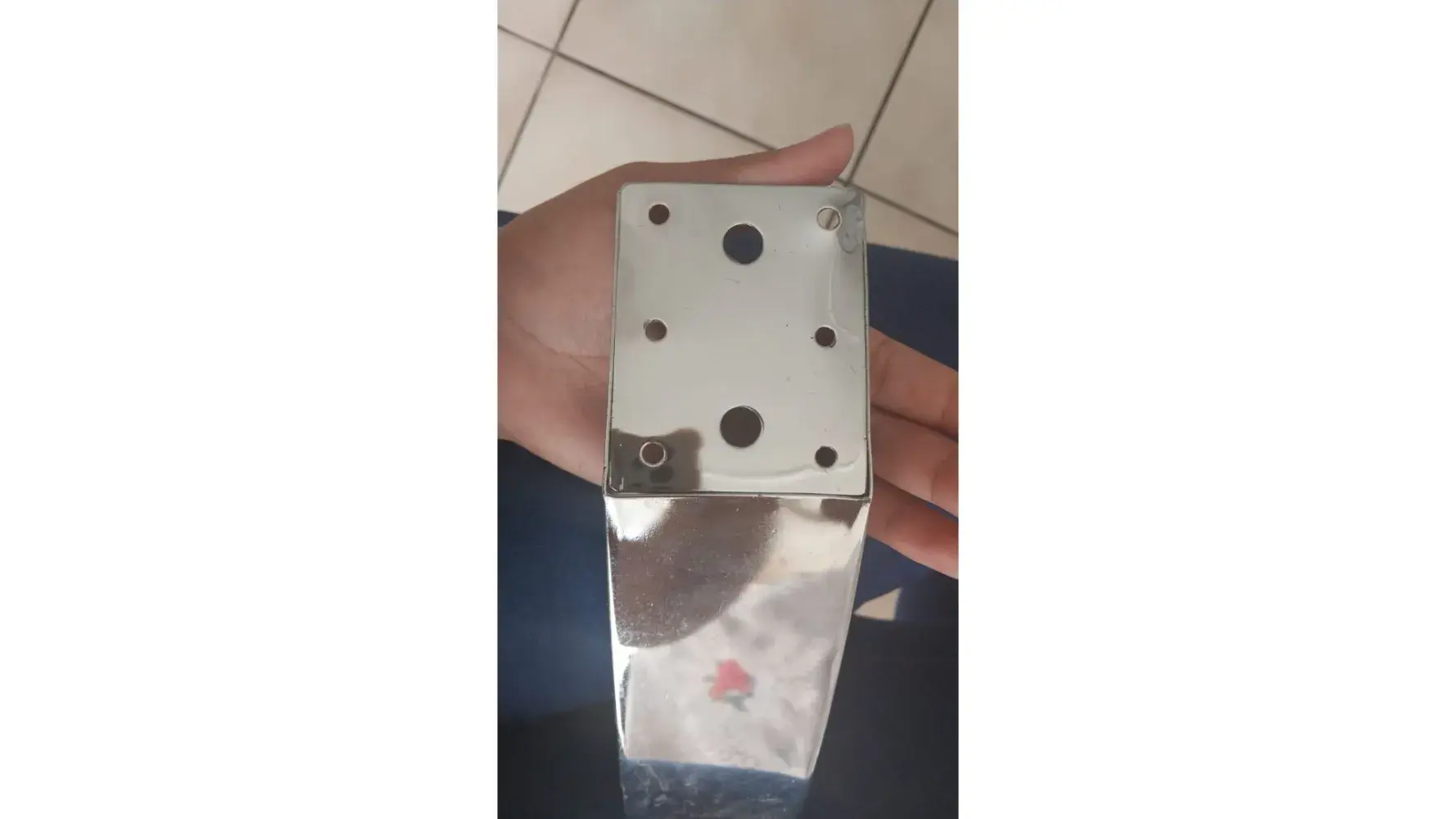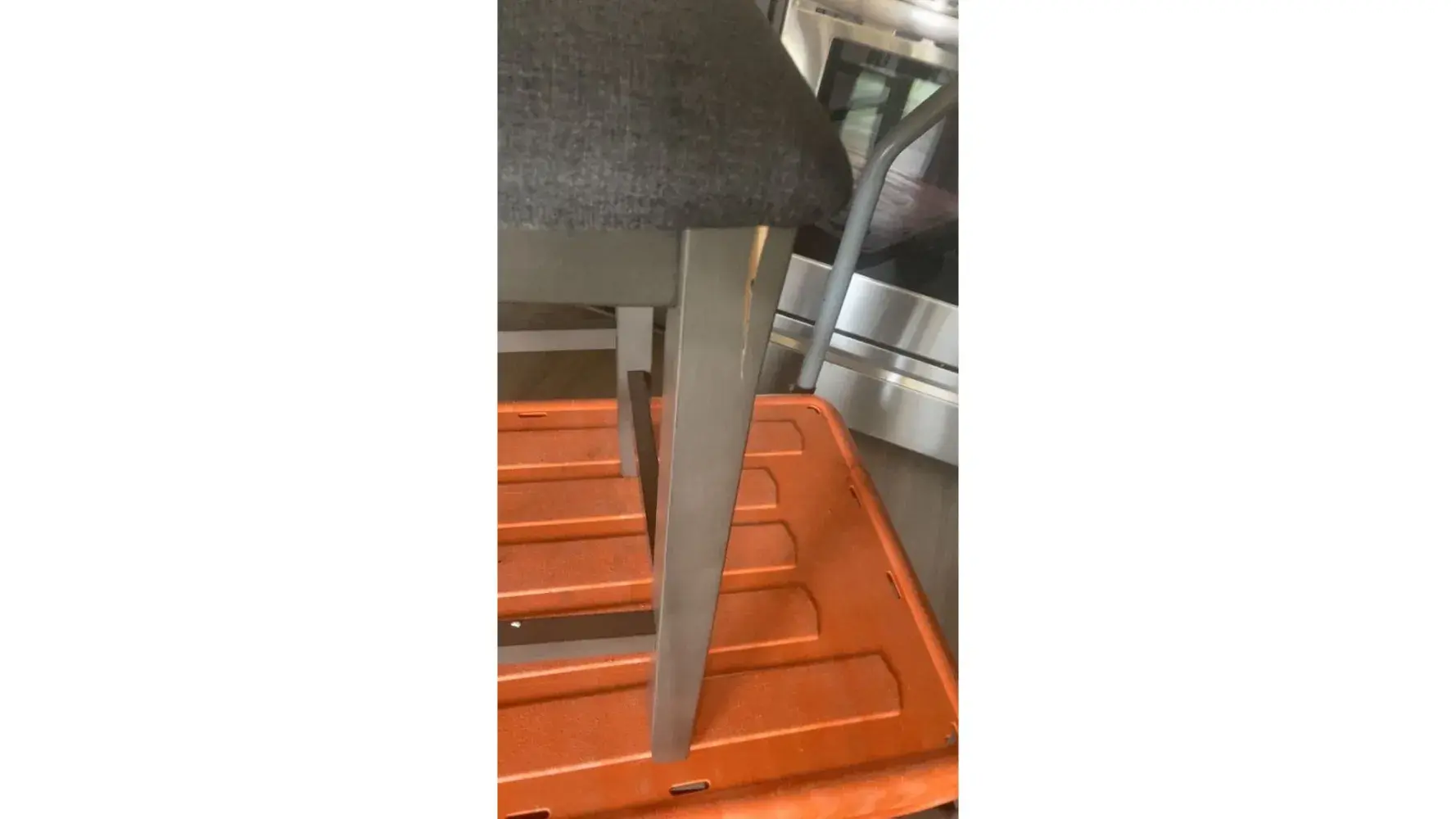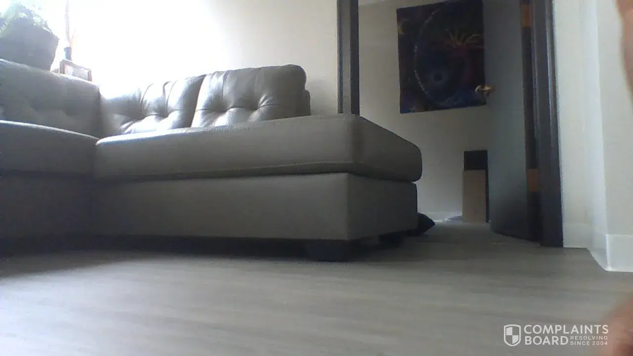 The above picture was from the first day we received the sleeper couch. All the other products we bought we are extremely happy with however I'm very disappointed and disgruntled as we do not even have the sleeper couch for a month but the pictures below will show the poor quality of the support (leg) provided.