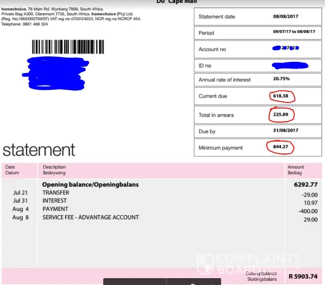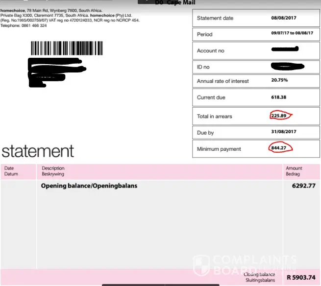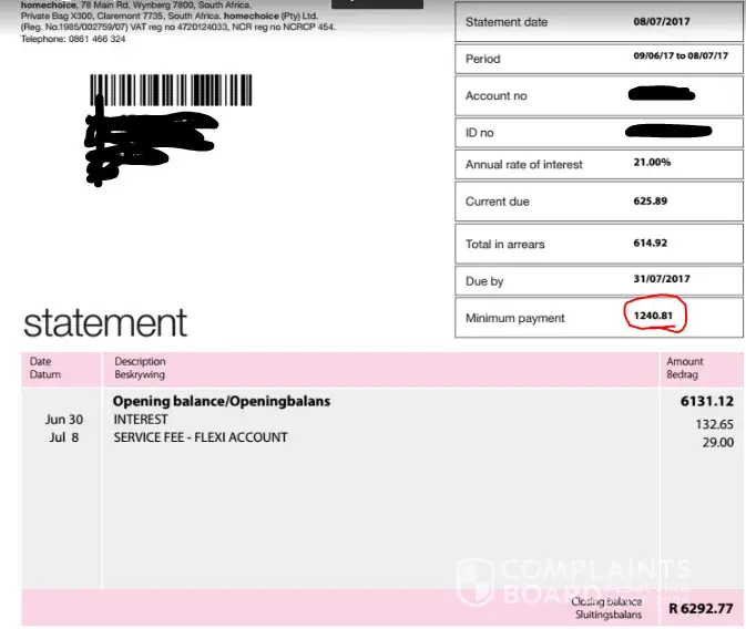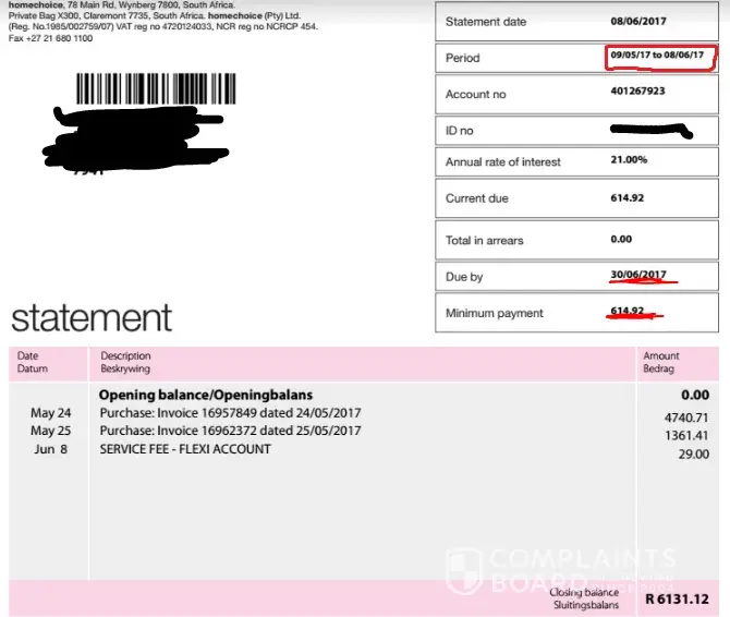 When I received my first statement from Homechoice, I was surprised to see that the first installment was R614.92, and noticed that I was billed from the 09 May 2017 (My order date was listed as the 23 May 2017. I didn't even mention this to the consultant) I called into the call center again and asked an agent to please escalate the matter and that I wanted to have my call listened to. I did not agree to pay anything over R400. I was told that someone would get back to me.