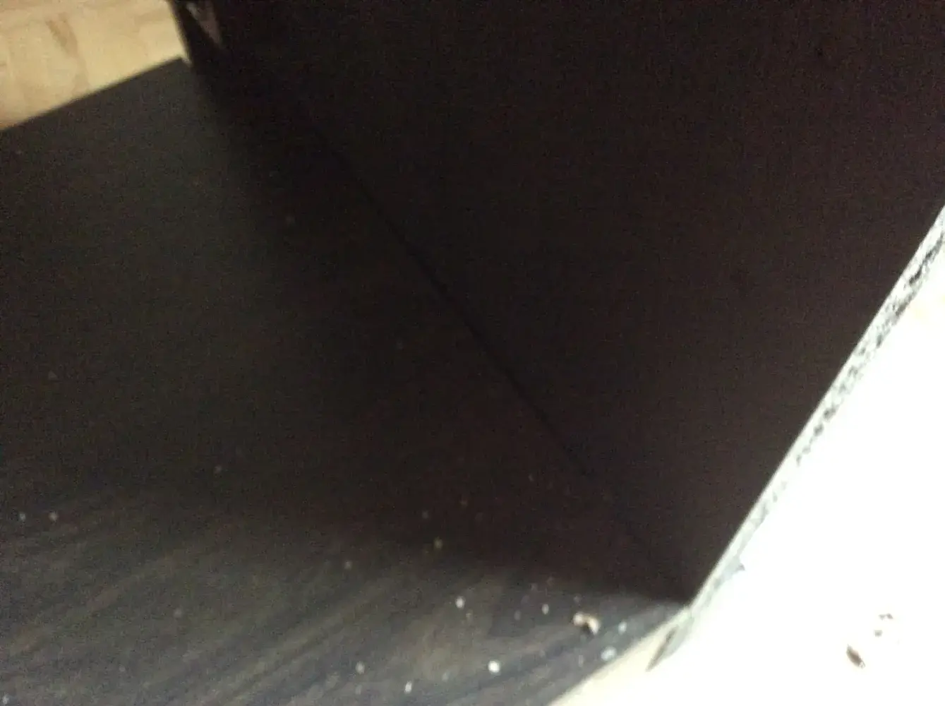 The back for one piece of furniture (bookcase) consisted of three sections taped together, none of which appeared to match the finish of the furniture and one section appeared unfinished with large splotches on it as if something had been spilled on it and eaten away at the surface of the wood or the wood had otherwise been damaged or was defective.