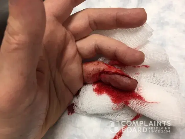 They asked us to show them the product that cut him. He is standing with a handful of blood, bleeding everywhere. We finally gave up and left because they couldn't help.
