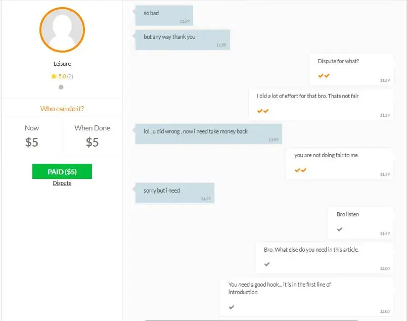 I posted the perfect and accurate work as an answer but after downloading the work, Student made the dispute and demanding his money back. I also put the complaint in homeworkmarket help but did not get any response. Somebody guide me what to do to secure my amount and hardwork from being scammed by the student. Answer was perfect but student told that it is wrong and he just put the dispute there.