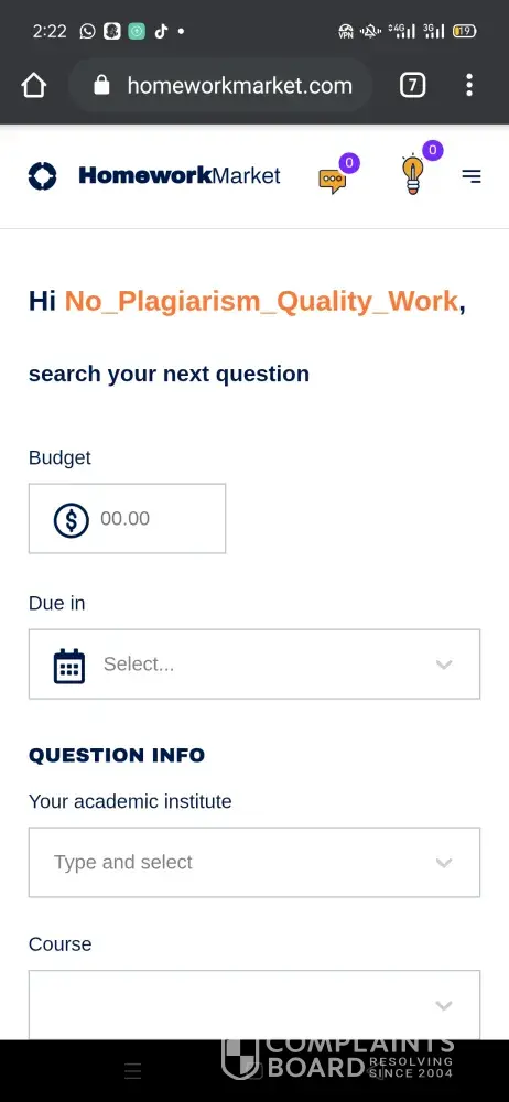 Be careful. Check reviews and watch out for issues before dealing with HomeworkMarket.com.