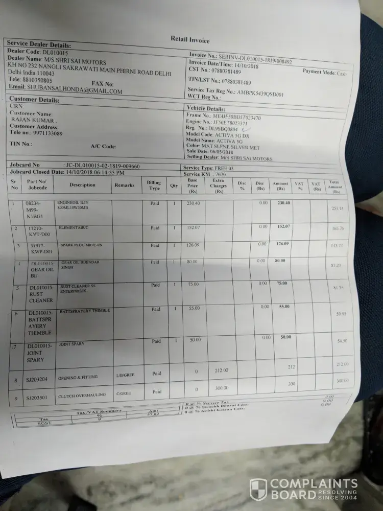 Very poor service and facke commitment Free service bt Charged by Customer, s pls take action