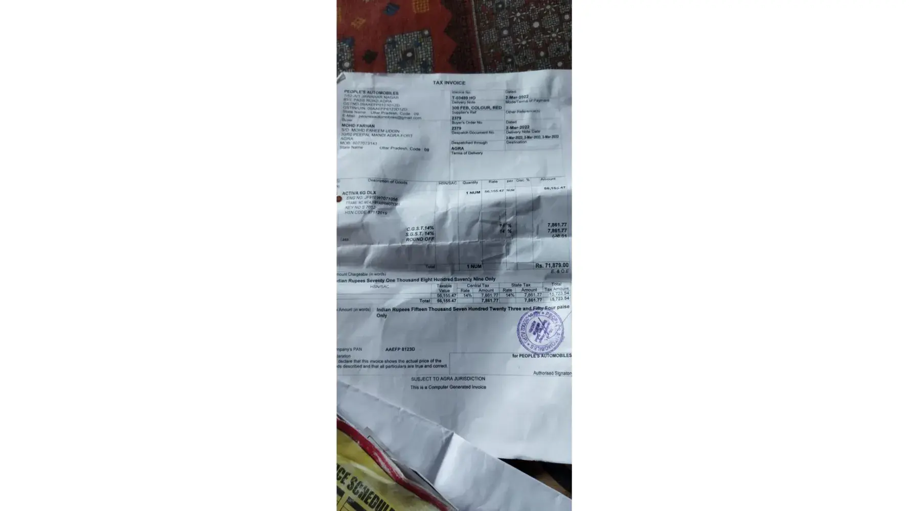 Owner name Viswanath Patro, S/O-Late Parshuram Patro, Address-sastri Nagar 1st lane gosani nuagaon Berhampur Ganjam, vehicle class-MCY, Colour-Grey, Chassis no.ME4JF083K78034947, Engine No.JF08E5066498, Registration date-03-11-2007, vehicle Registration No-OR07P8059, RTO name- GANJAM, Certificate Registration no.RA00270737