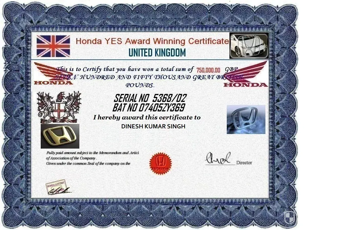 SIR, Mr.ALEX JOHNSON TRY TO ROUGH UK PUBLICITY AND LOOTED TO INDIAN PEOPLE HELP TO LOTTERY SYSTEM.I INFORM TO SOME MAIL GIVEN MAIL dip.[protected]@hotmail.com no.[protected] from BBC ONE LOTTERY UK, BLACKBERRY PLAY BOOK EXHIBITION2012 MAIL [protected]@hotmail.co.uk, TOYOTA AUTOMOBILE COMPANY MAIL [protected]@bol.com.br. HONDA AUTOMOBILE COMPANY MAIL honda.[protected]@hotmail.co.uk. NOKIA ONLINE PRAMOTION MAIL nokia.[protected]@live.co.uk. BBC ONE NATIONAL LOTTERY MAIL [protected]@live.co.uk. ABOVE COMPANIES SEND MY WINNING CERTIFICATE ME.I CLAIME TO ABOVE COMPANIES TO GIVE MY PRIZE BECAUSE I GIVEN TO THE CUSTOM CHARGE