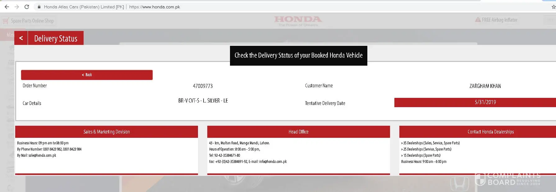 Honda Pakistan skipped my date of delivery even new vehicle available from their dealerships by paying extra money on invoice price.