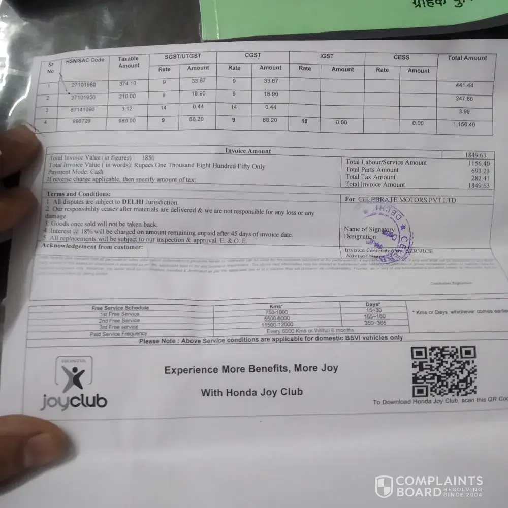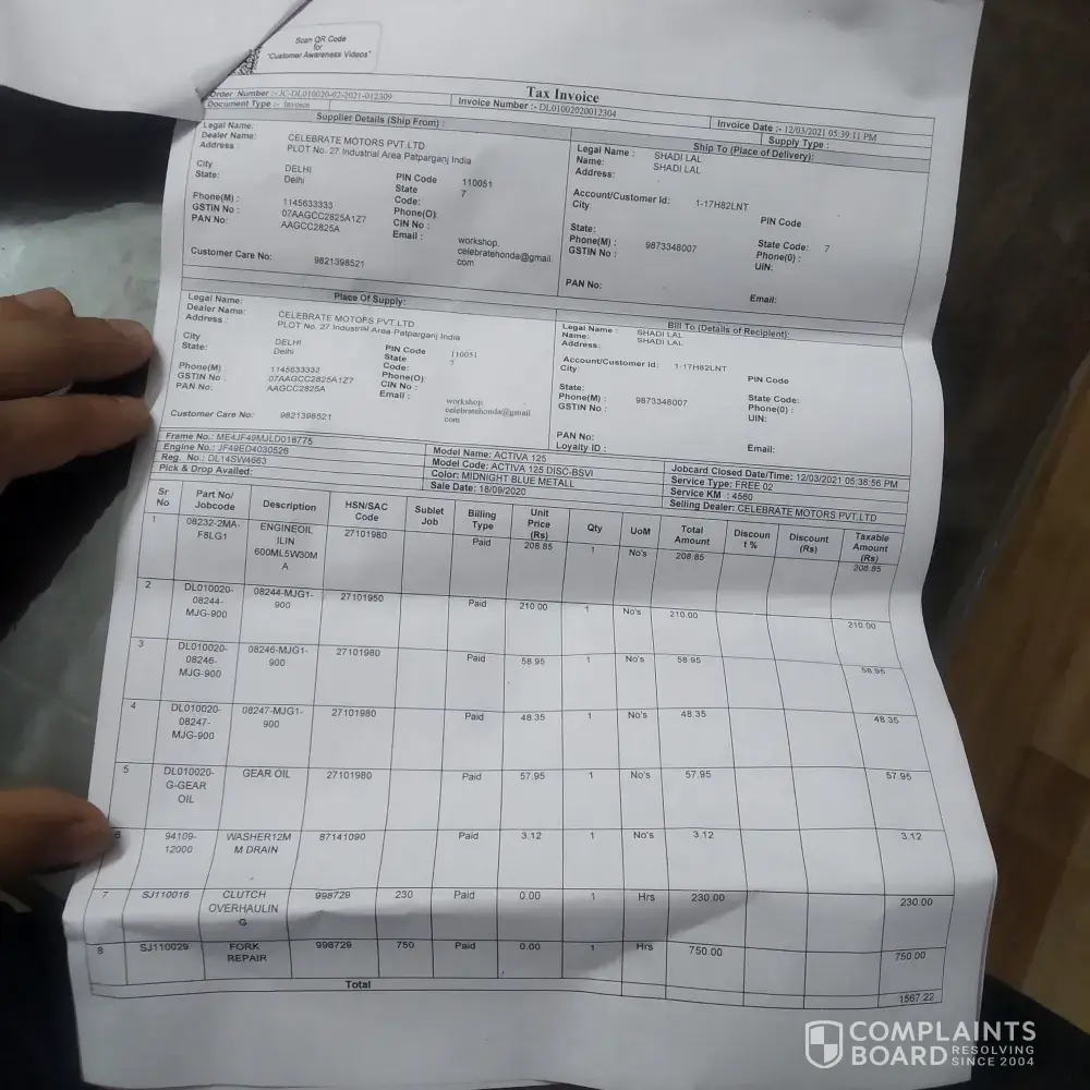 I bought Honda scooter in September 2020, it came with three free service, on first service I paid amount 600 for oil change as its consumable item, second service Honda service station made bill of 1850 INR just after 6 months of first service.
