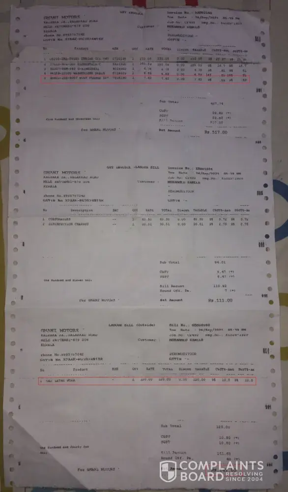 I have bought A Scooter (Honda dio BS6 New standard model) from Ghani Honda pattambi Showroom. three services have been completed. The bolt of slincer is frequently breaking. The service department of ghani Honda Charge its expense and Gst from me. I think this problem manufacturing defect of this Model Scooters,