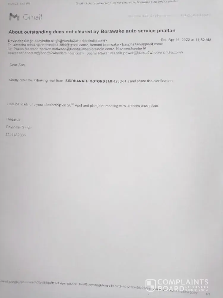 Read full complaintHonda Motorcycle & Scooter India (HMSI) complaints: history and resolution overview