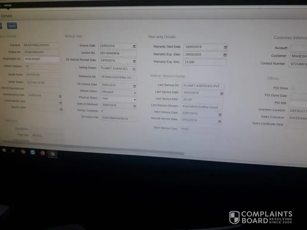 We gave the vehicle first service at planet honda rajajinagar showroom at that time service executives wrongly mentioned that vehicle is runned about 30707 km but vehicle is actually runned about 3707 km but they didn't informed us aboi this when we went give second service at other showroom then we came to know about this ...is this the way you treat customers and is that all you honda give customer satisfaction about your product
