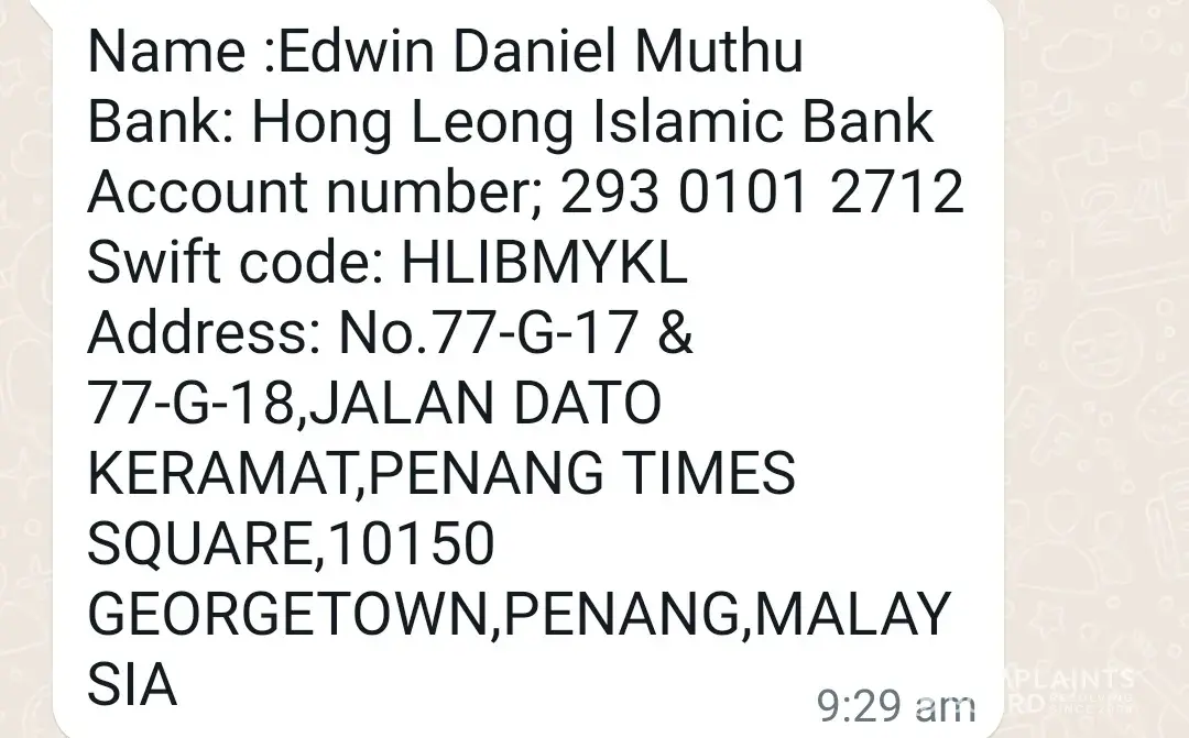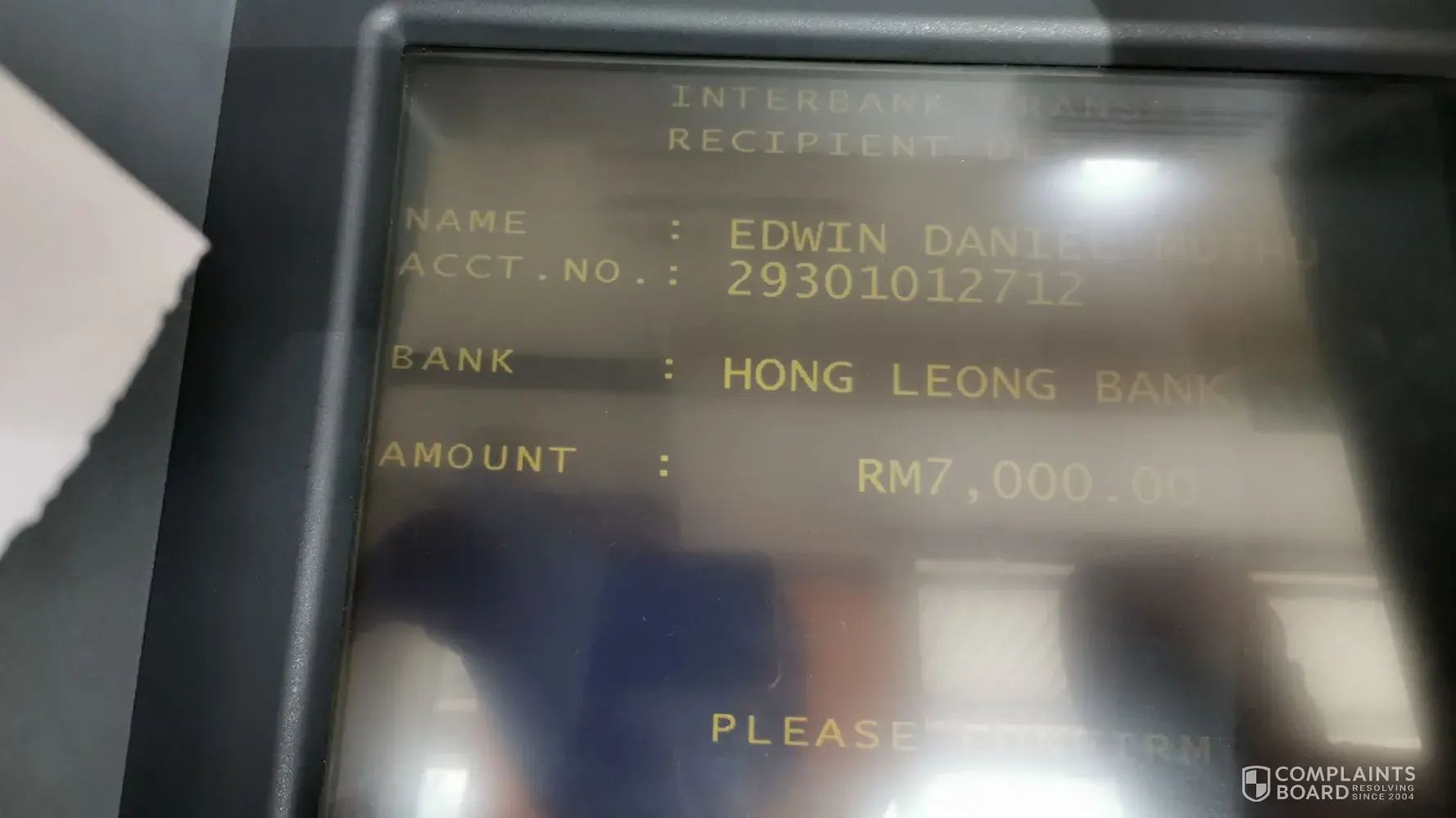 Here I want to file a complaint against Hong Leong bank regarding regarding this.incident and I want the money returned to me as soon as possible.