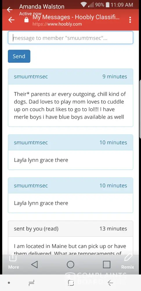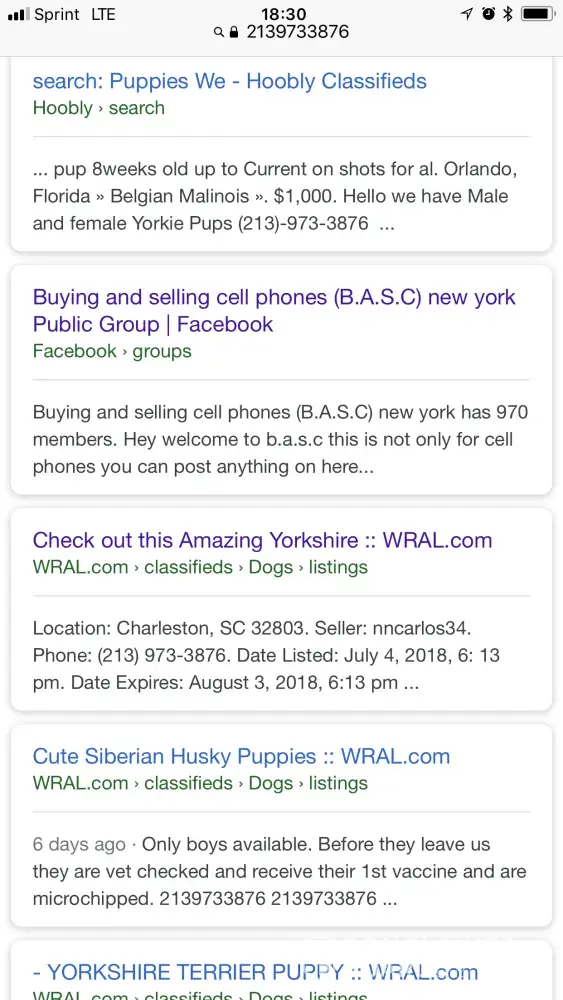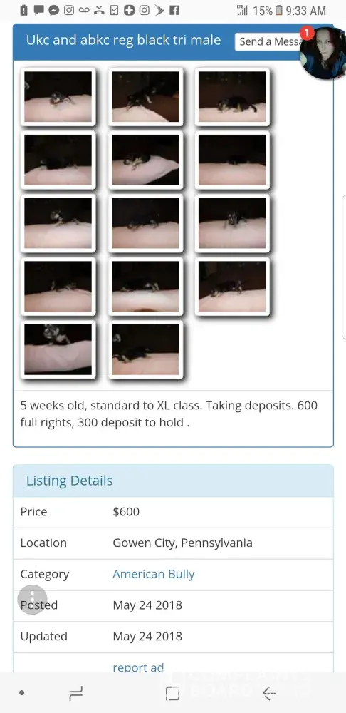 So, this seller is not in the location they are stating on hoobly, the grammar is really poor like they are not american, but also they say they are leaving in 3 days time to another state and most offload their puppies, but when you look at their seller history, they have over 10 current listings of dogs they are selling, all different breeds, so you know something is seriously not right.